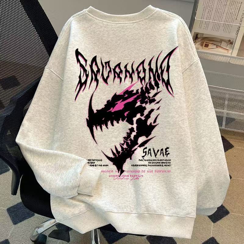 男女童圆领套头卫衣2025春秋新款美式酷帅宽松oversize长袖上衣