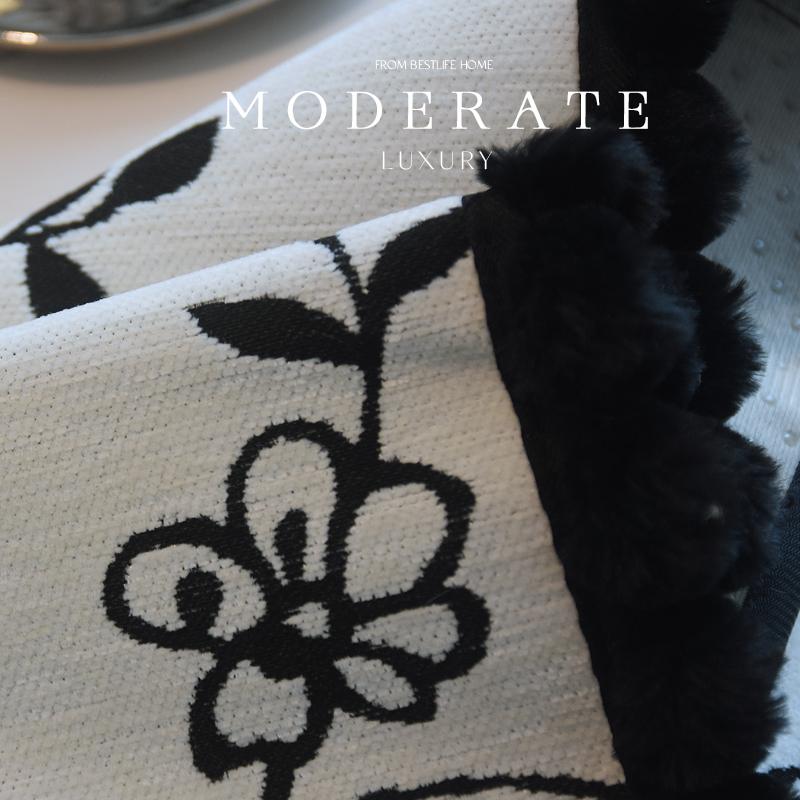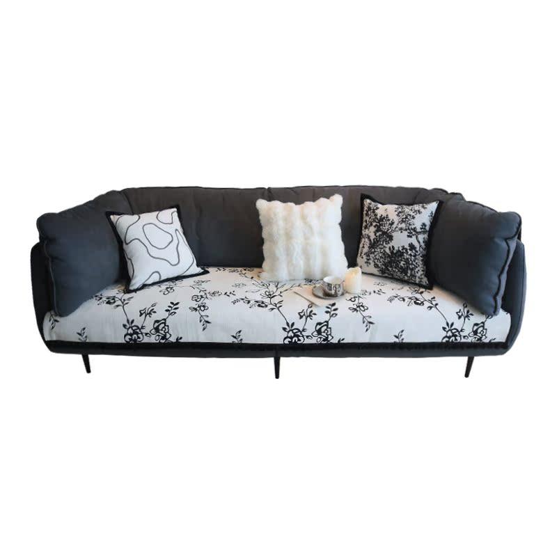 定做四季通用雪尼尔沙发垫防滑黑白法式复古高级简约现代沙发坐垫