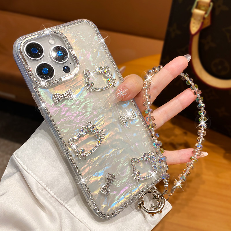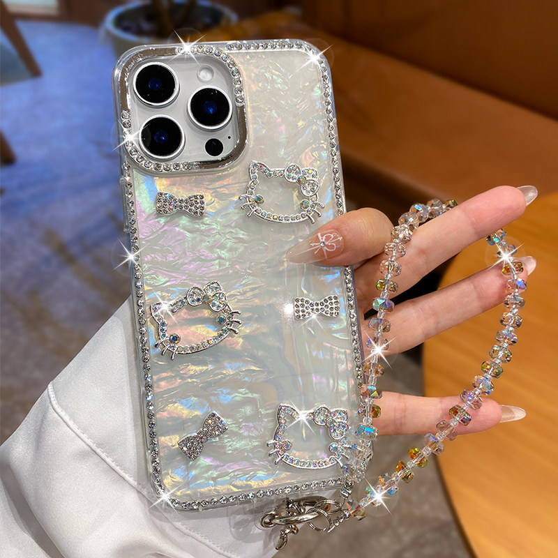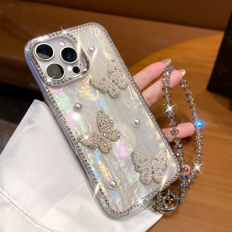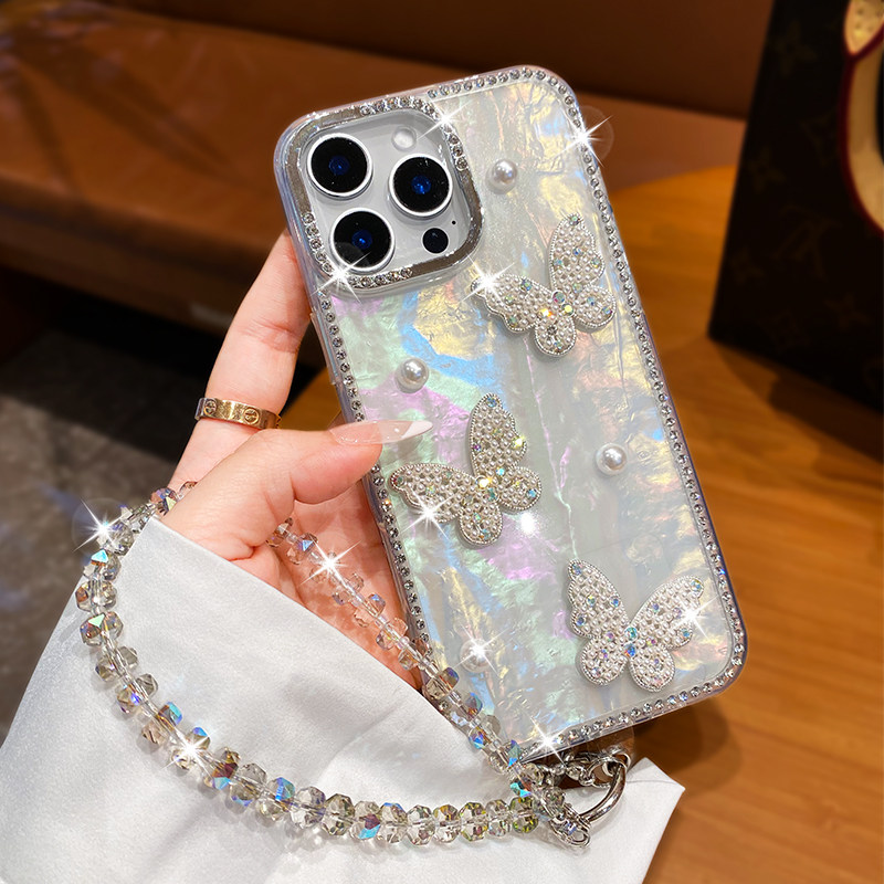 适用苹果16promax手机壳17新款iPhone15奢华水钻14pro女款高级感13网红爆款plus带挂绳12爆闪ins蝴蝶结11防摔