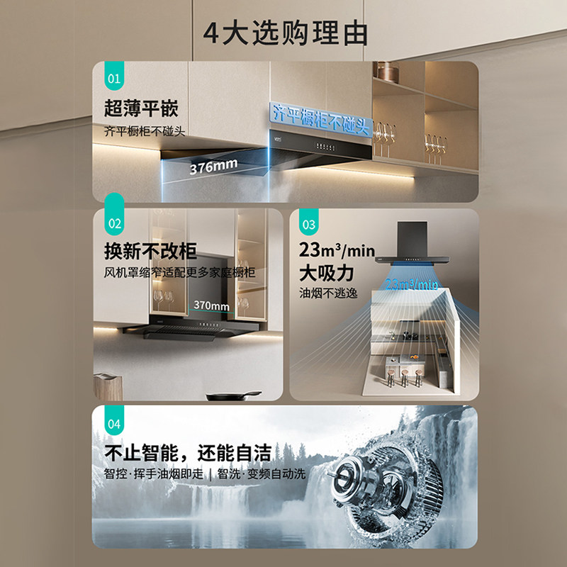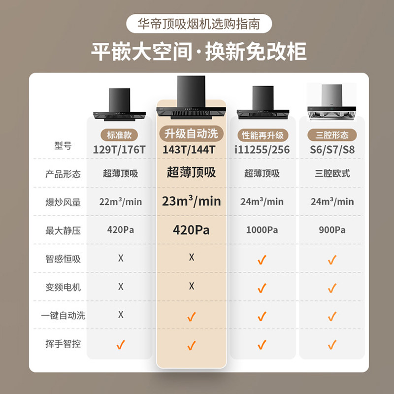 华帝i11144T超薄顶吸抽油烟机大吸力油烟机官方旗舰店正品