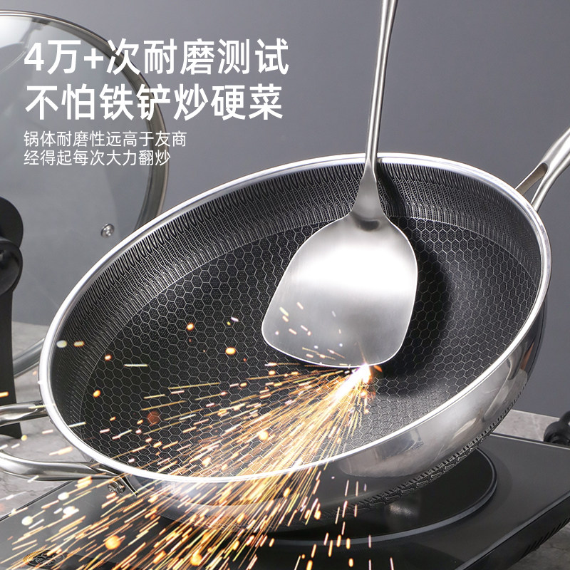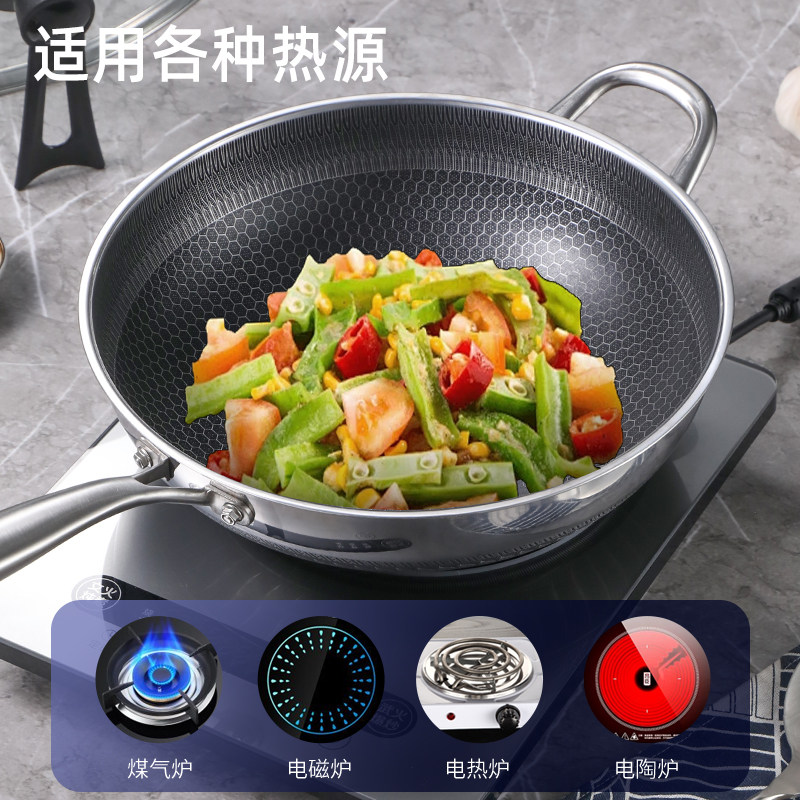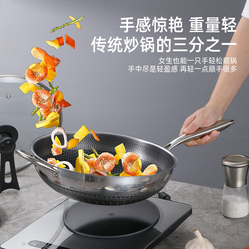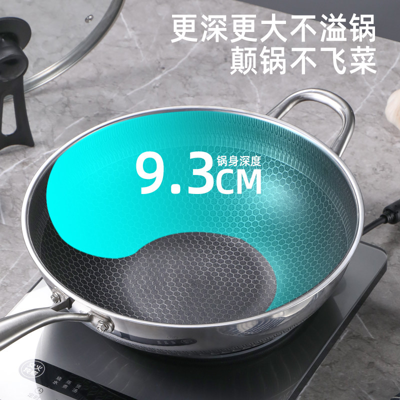 316L不锈钢炒锅无涂层不粘锅家用炒菜锅电磁炉煤气灶专用平底锅具