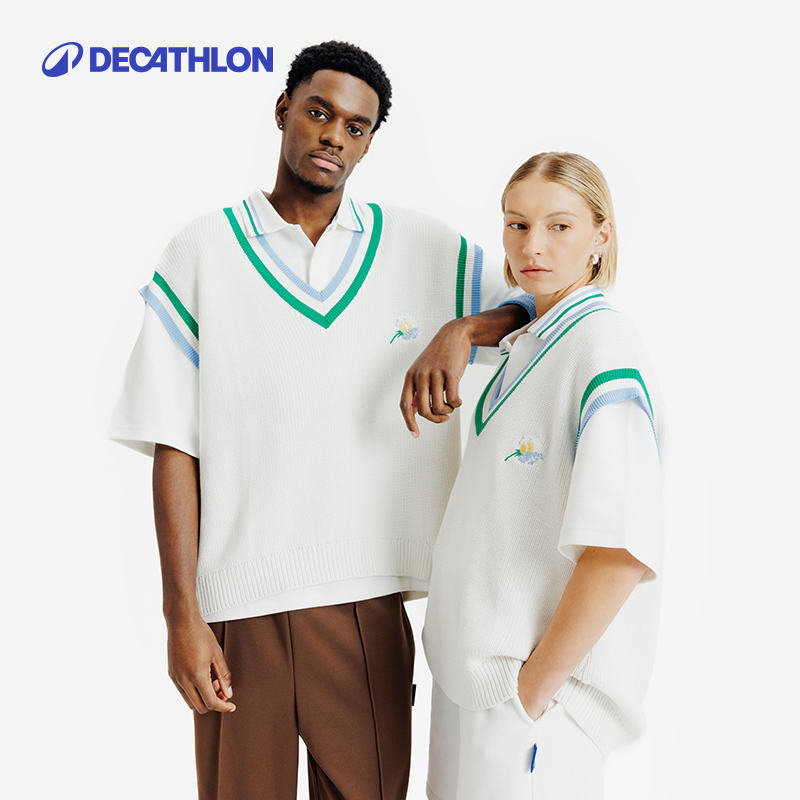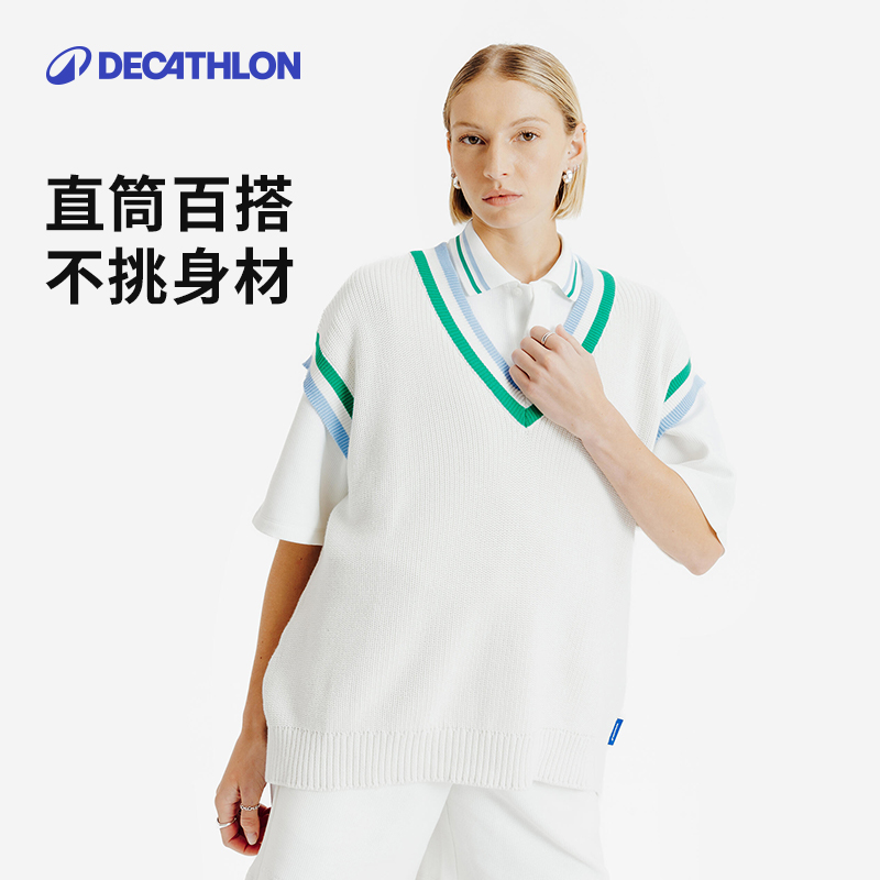 迪卡侬SPW366464迟放之花针织背心复古V领直筒马甲男女同款SAX1