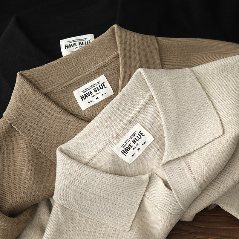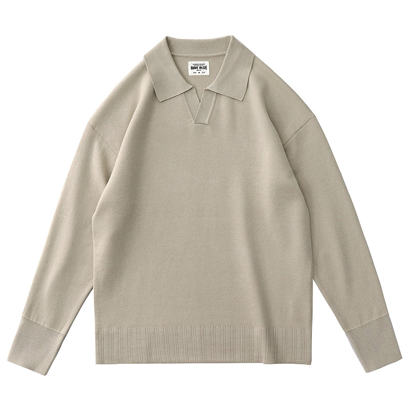 秋季新款休闲翻领毛衣复古时尚内搭宽松慵懒纯色POLO领针织衫男