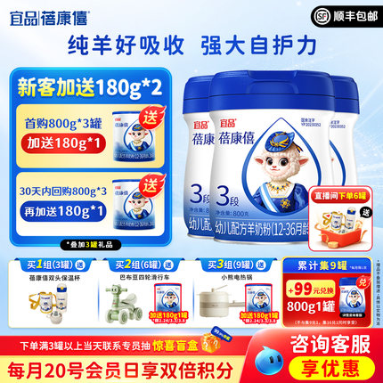 宜品蓓康僖婴幼儿配方羊奶粉3段800g*3罐1-3岁宝宝旗舰官网正品