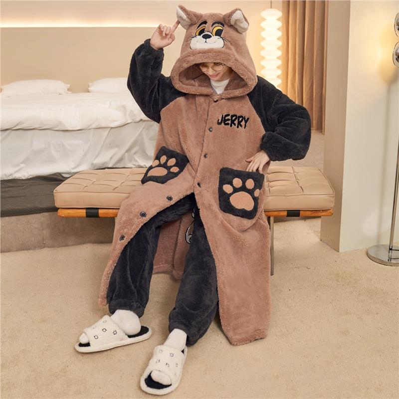 冬季加绒加厚珊瑚绒男士睡衣男款睡袍青少年学生卡通家居服秋冬款