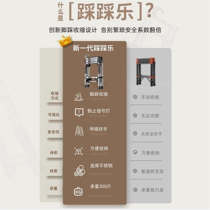 德国进口奥鹏多功能家用伸缩梯子加厚不锈钢折叠小梯子室内便携升