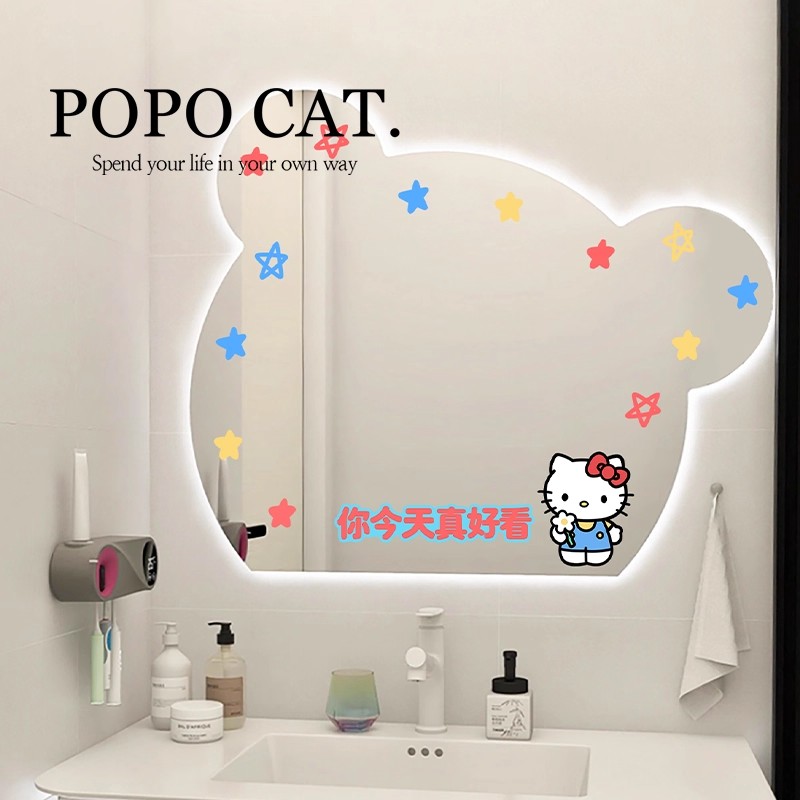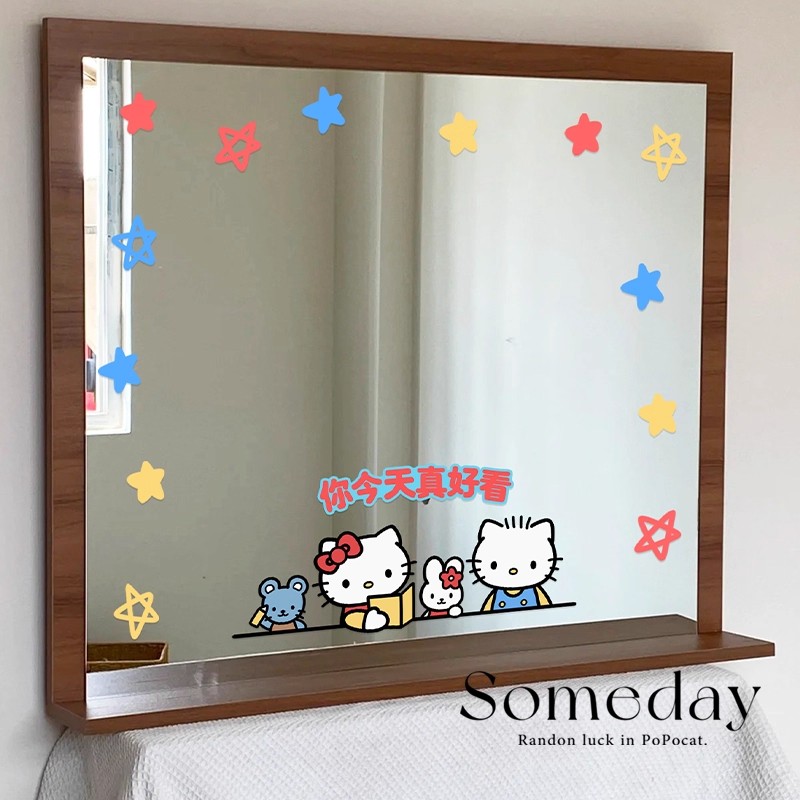hellokitty浴室镜子贴纸装饰窗户玻璃改造遮丑镜面无痕防水静电贴