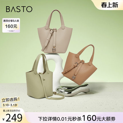 百思图商场同款时尚大容量手拎托特包水桶包单肩斜挎包女X2892BX3
