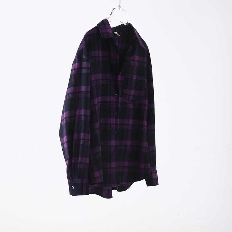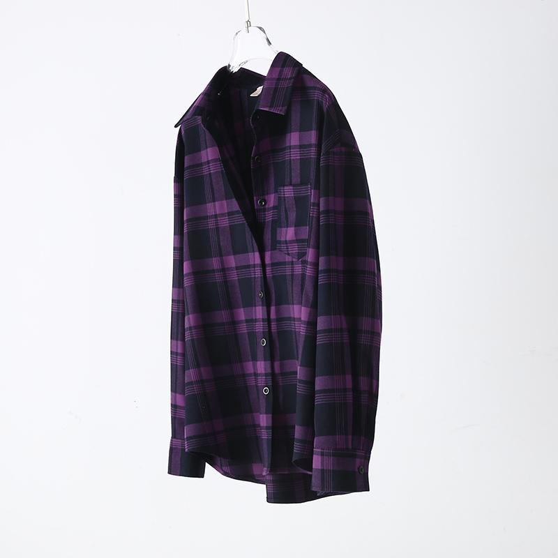 紫色格子衬衫女2025春秋新款短款长袖衬衣宽松轻度磨毛英伦风外套