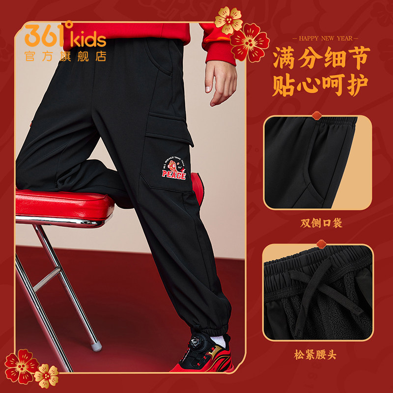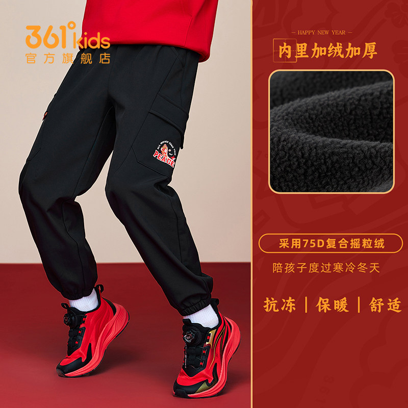 暖热绒|361度童装男童梭织加绒加厚长裤冬季儿童红色年装保暖裤子