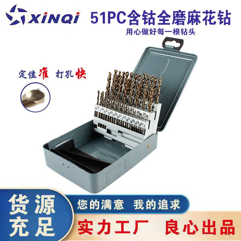 欣起51PCS麻花钻头组合套装手电钻打孔不锈钢工具含钴直柄麻花钻