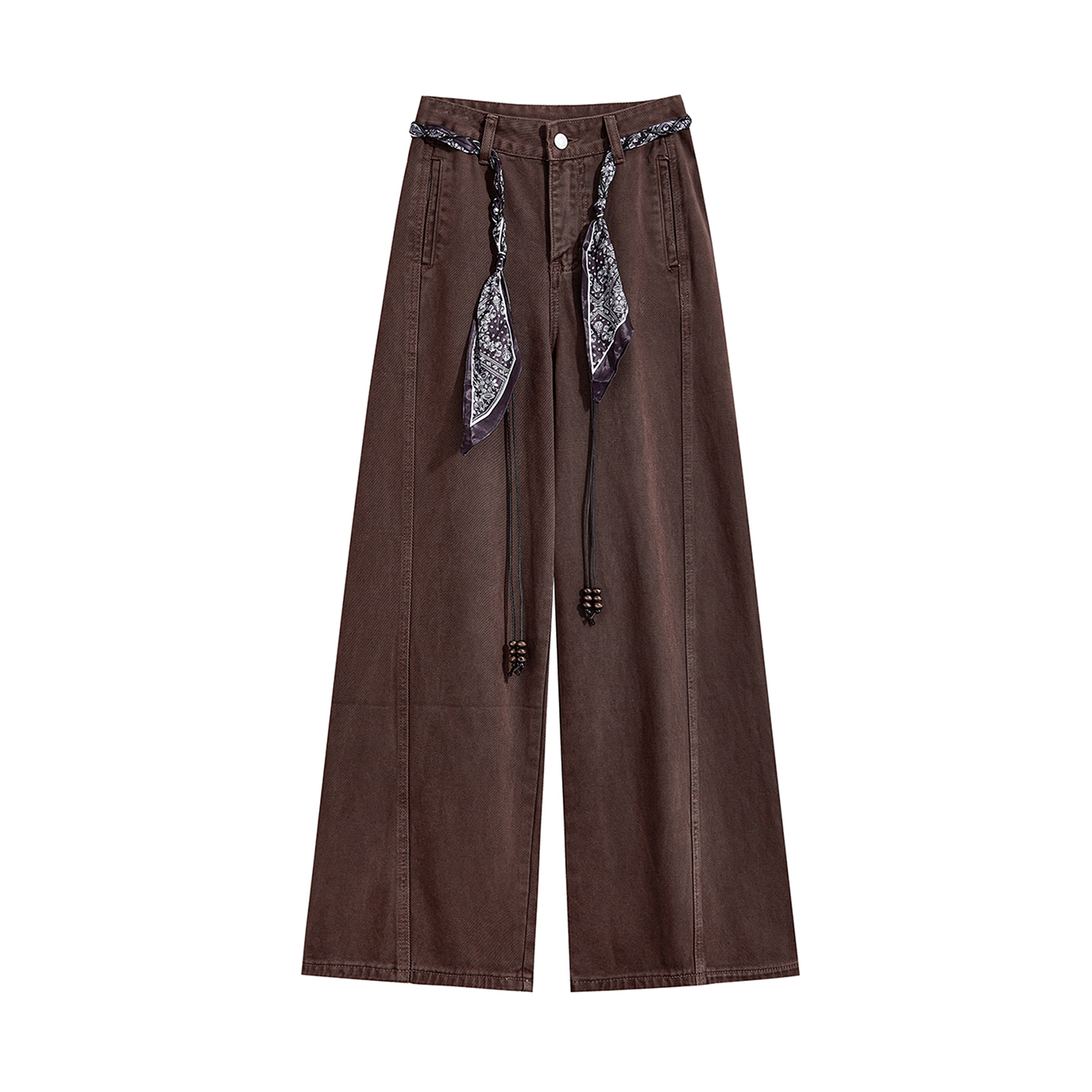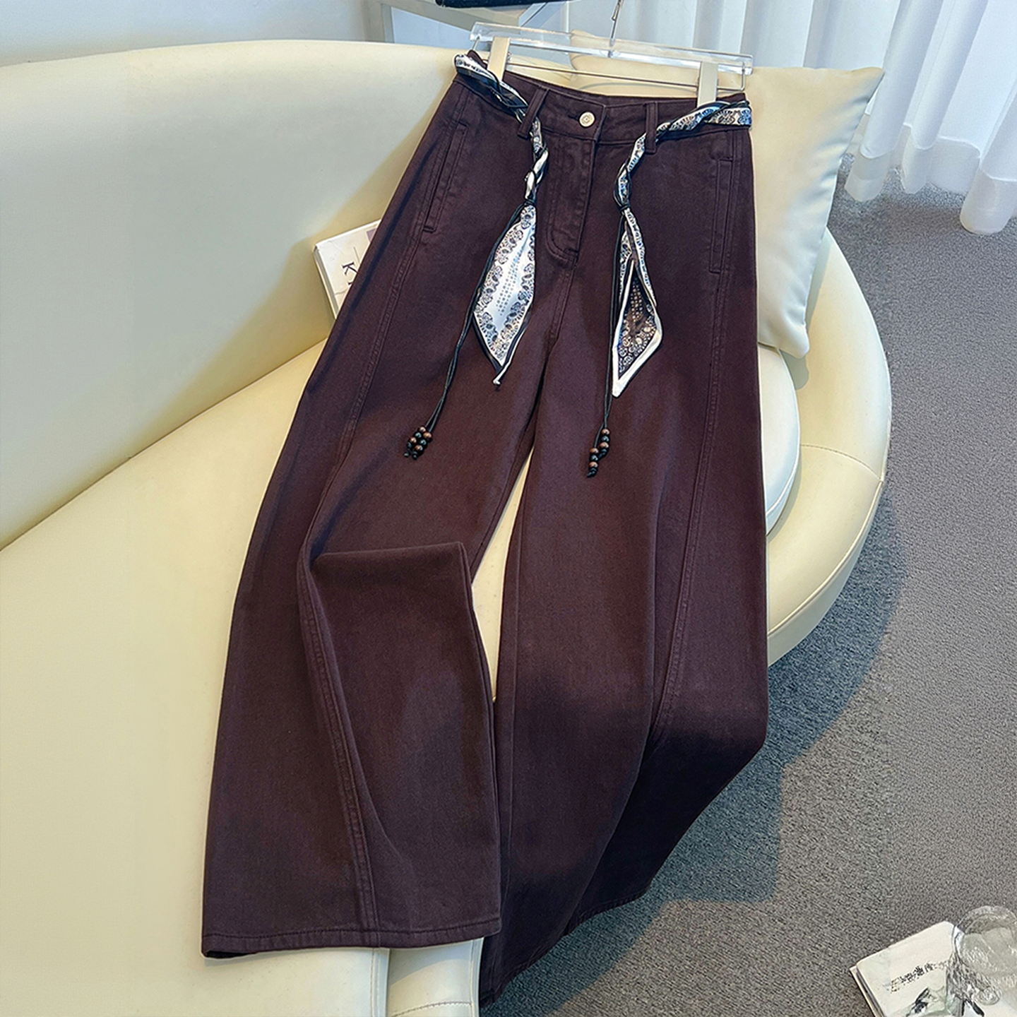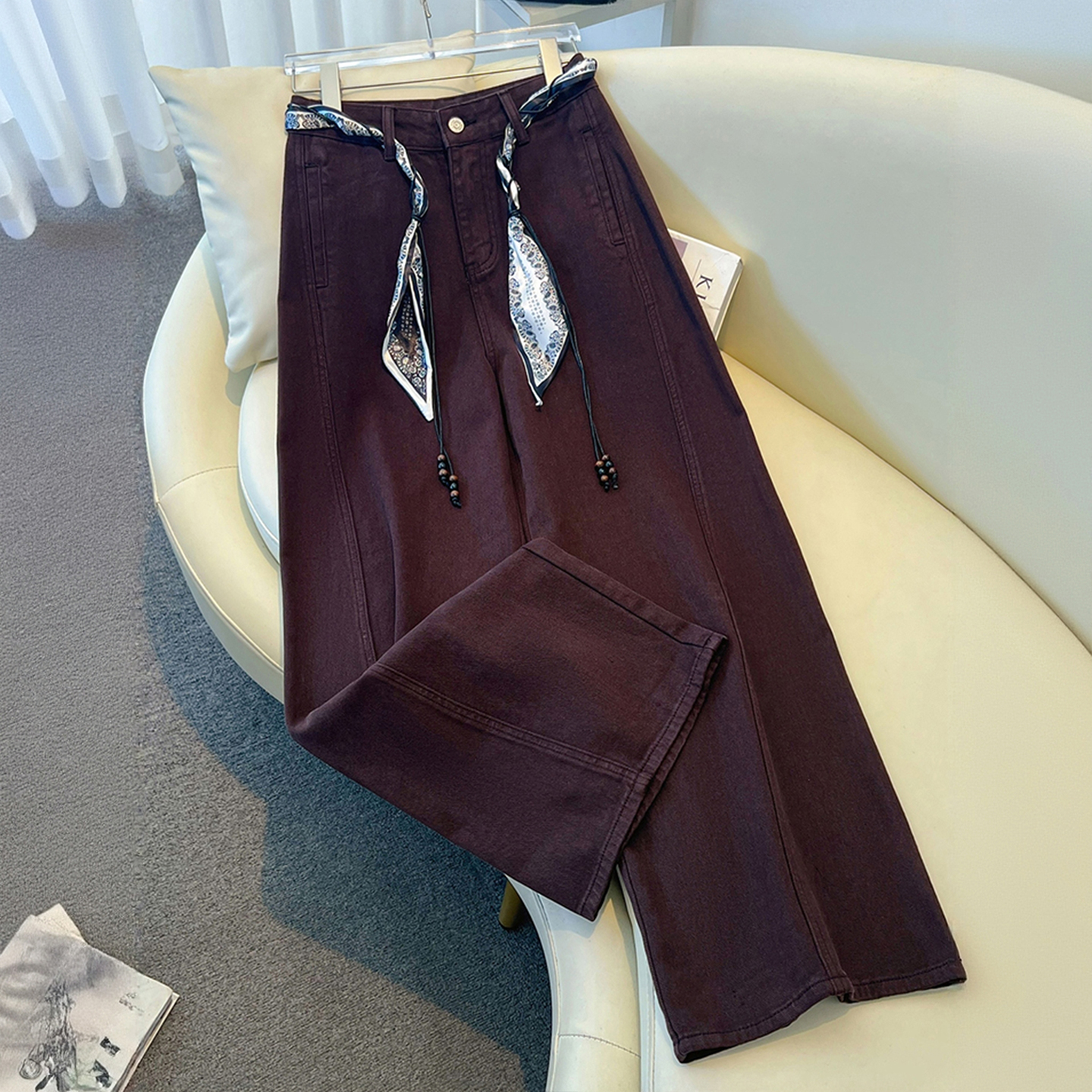 300斤特大码高腰宽松显瘦牛仔裤女新款胖mm咖色时尚百搭阔腿裤子