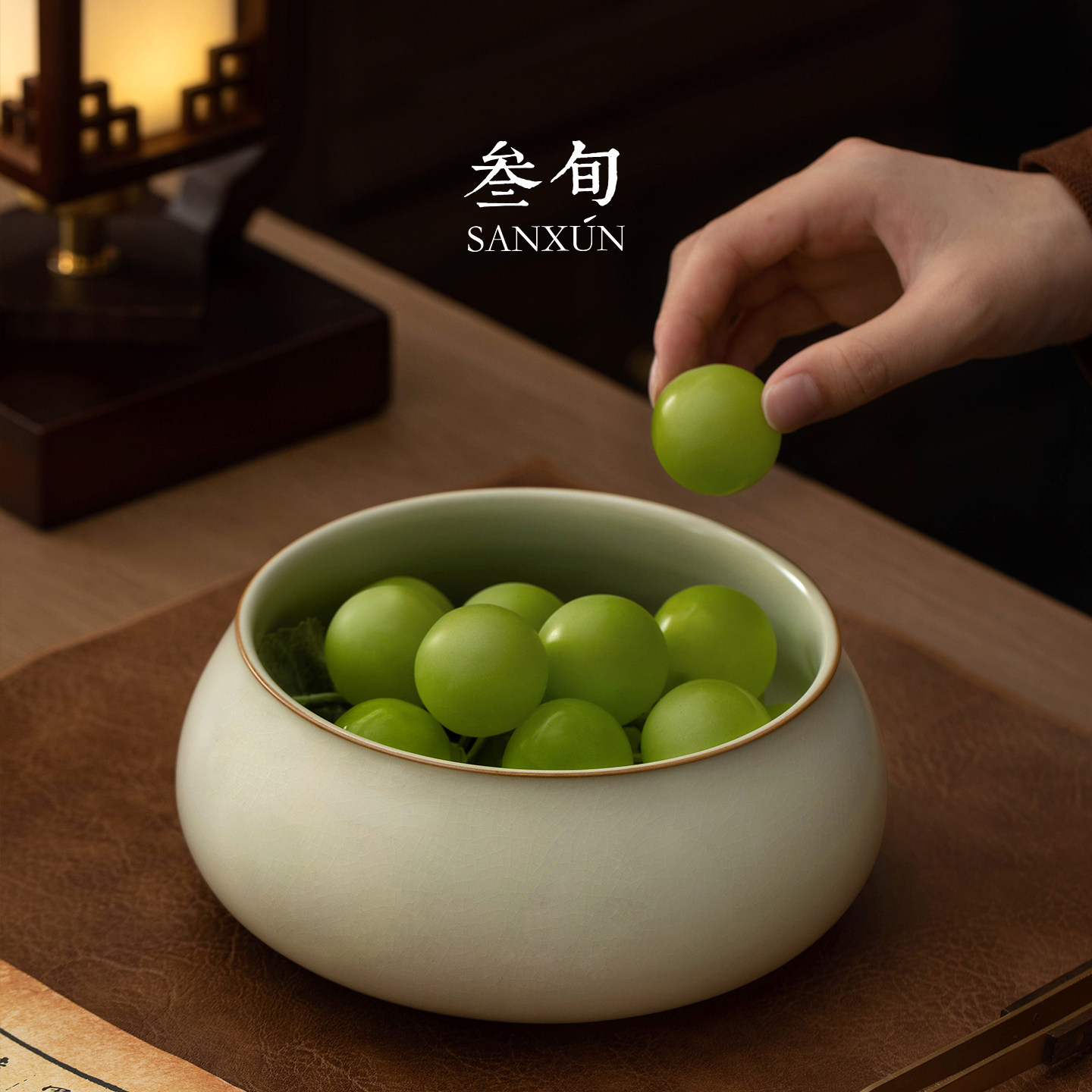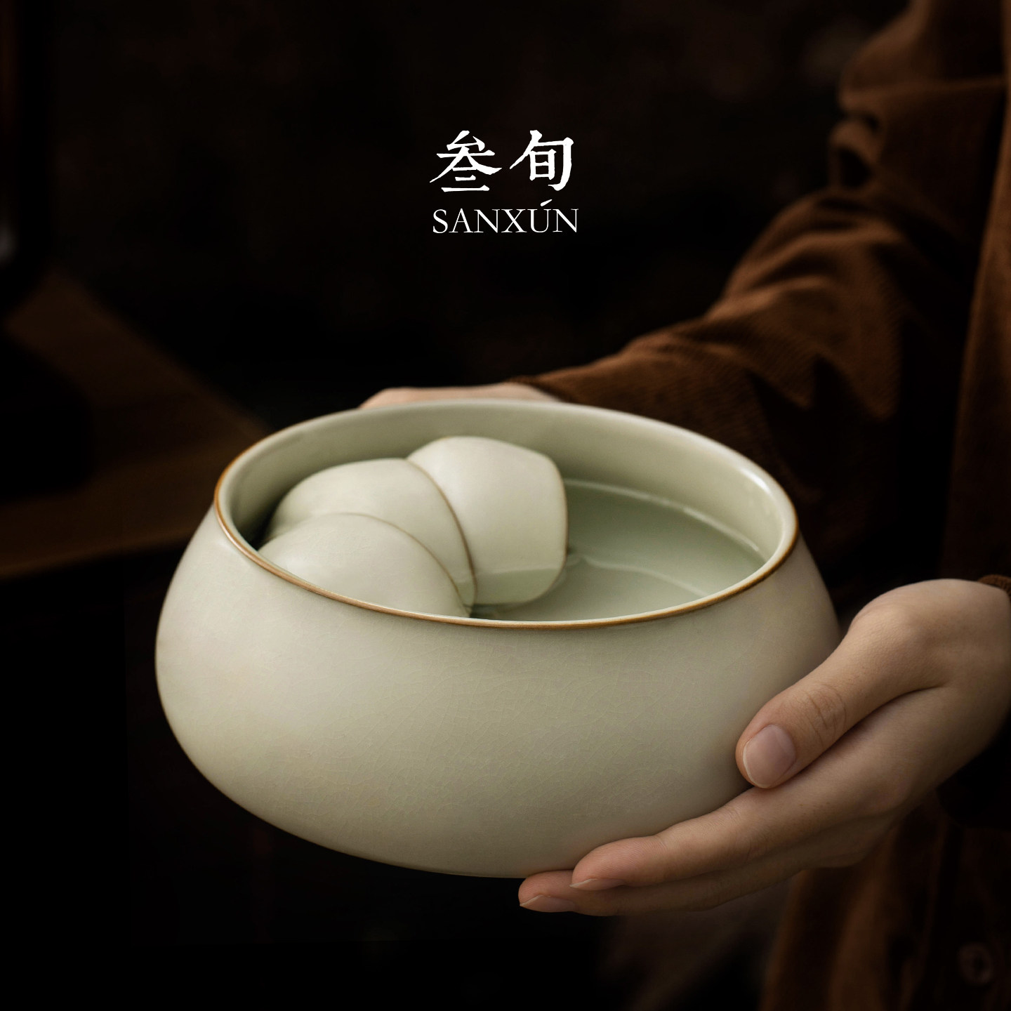 三旬汝窑茶洗茶渣缸轻奢高端陶瓷建水孟大号笔洗功夫茶具茶道配件