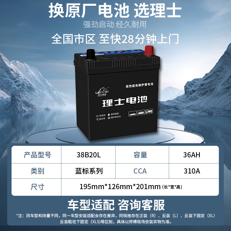 理士汽车电瓶蓄电池适用于思迪飞度锋范日产威玛江淮原装38B20L