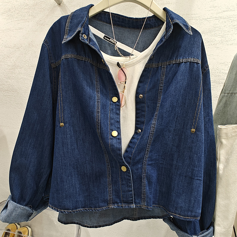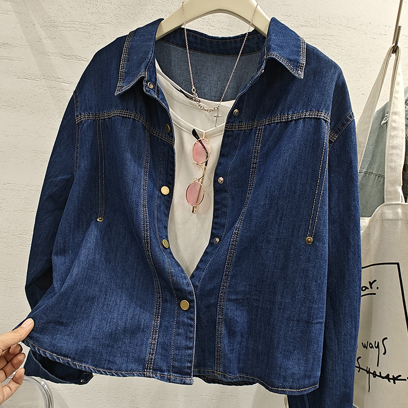 韩版复古蓝色休闲牛仔衬衫薄外套女2025春新款宽松短款小个子上衣
