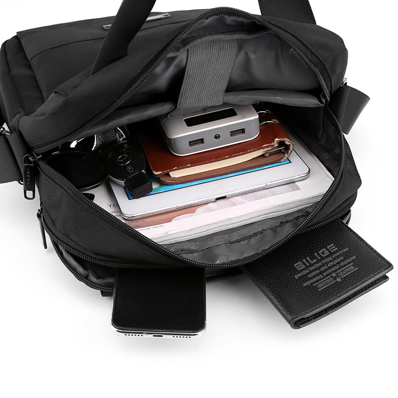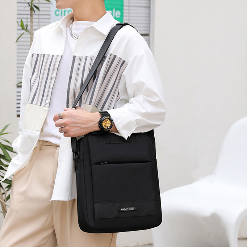 通勤商务竖款A4文件包斜挎包男休闲13寸方形背包单肩包手提公文包