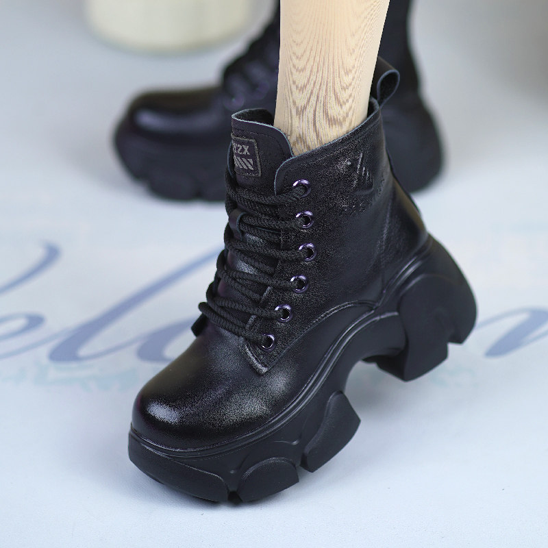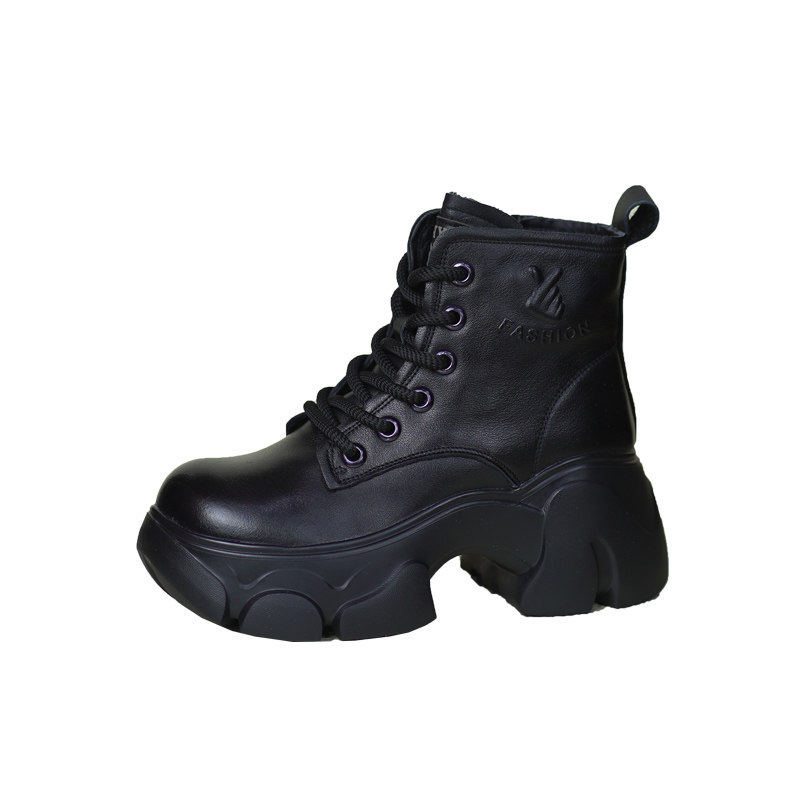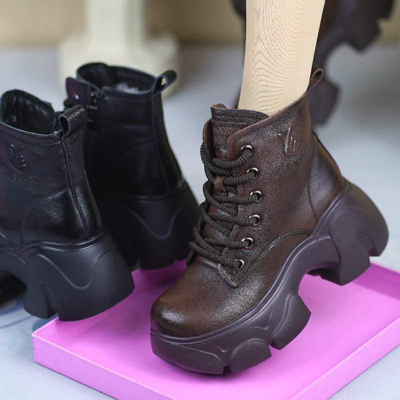 头层牛皮马丁靴女秋冬新款皮毛一体羊毛短靴真皮厚底小个子增高鞋