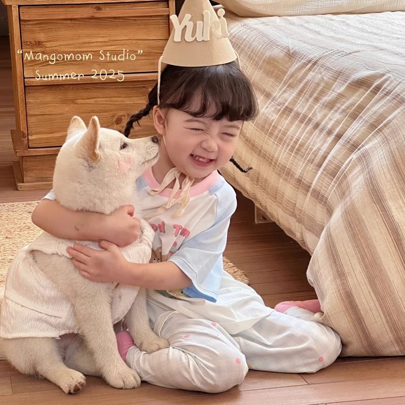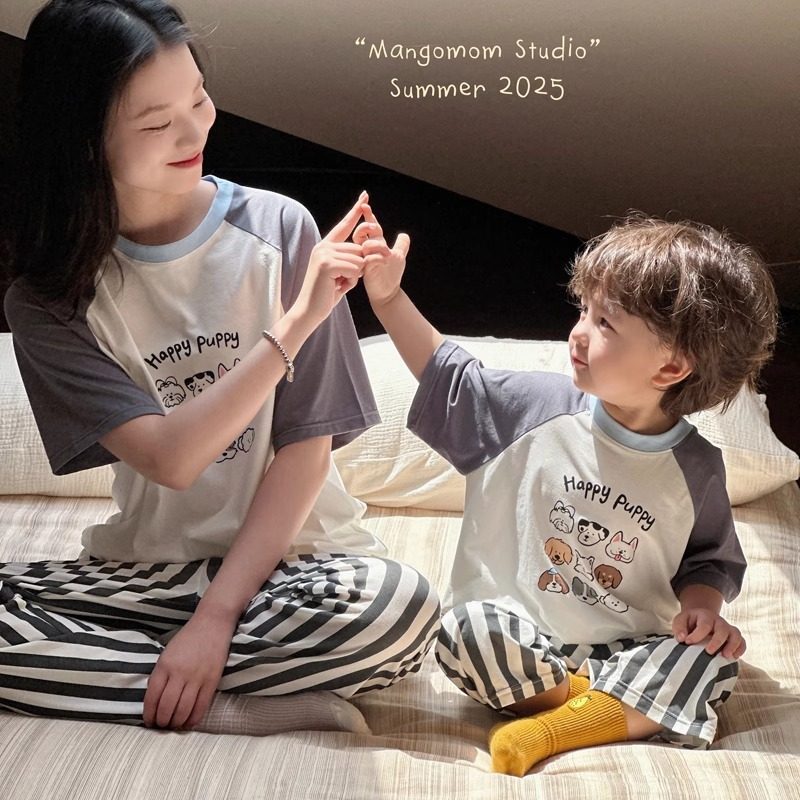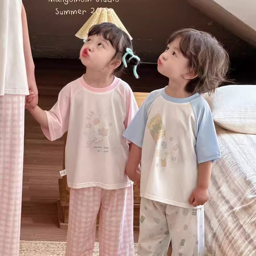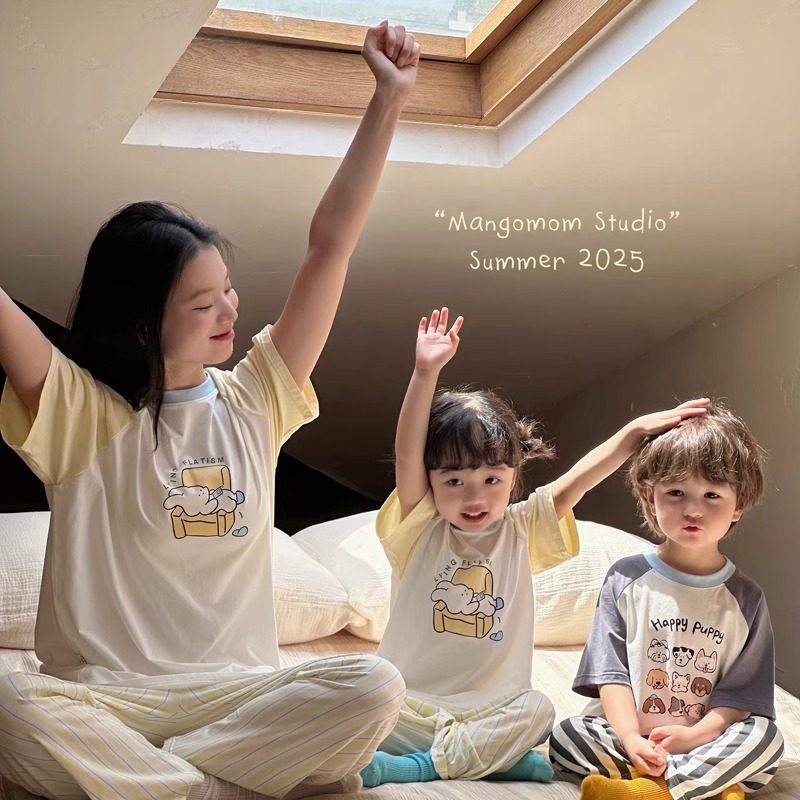 一家三口亲子装莫代尔家居服2025夏季儿童卡通清凉套装男女童睡衣