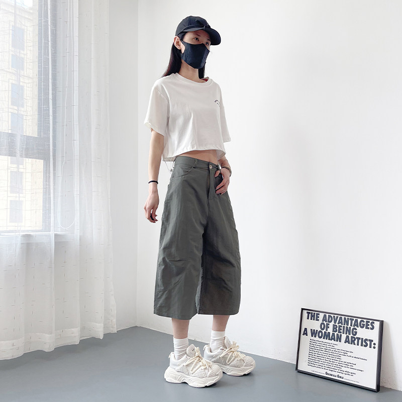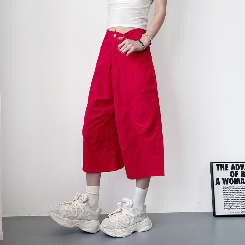 夏季冰丝速干西装裤女大码胖mm宽松显瘦休闲短裤高腰阔腿七分裤子