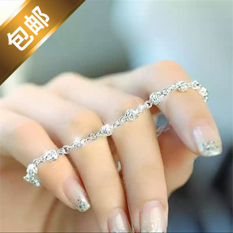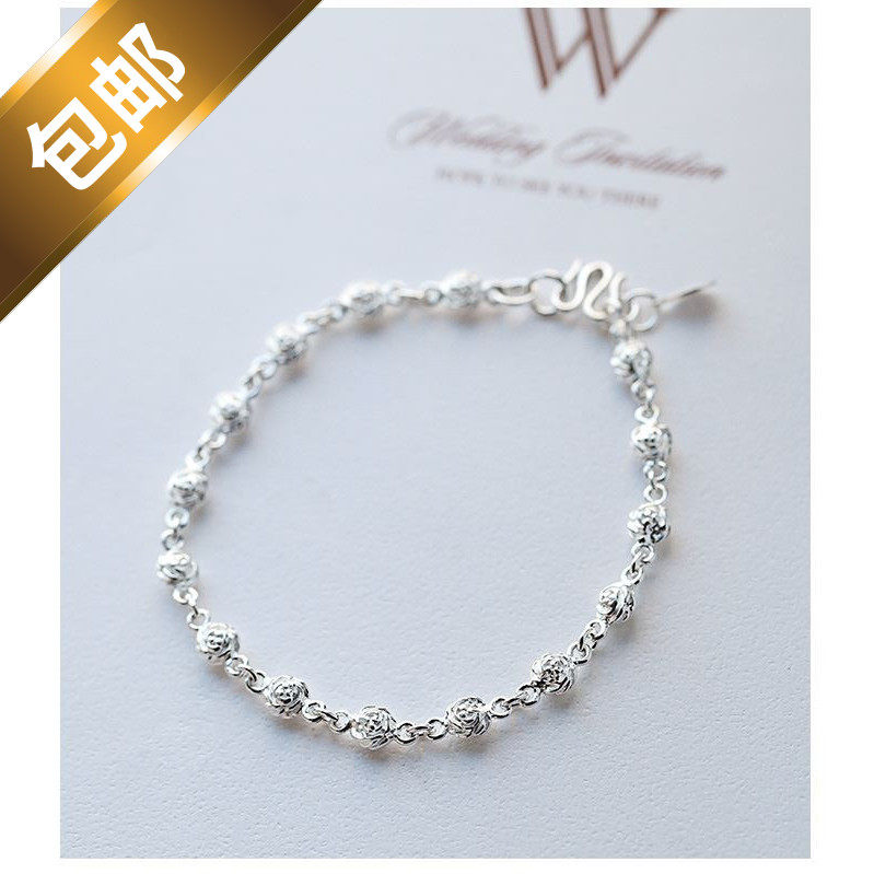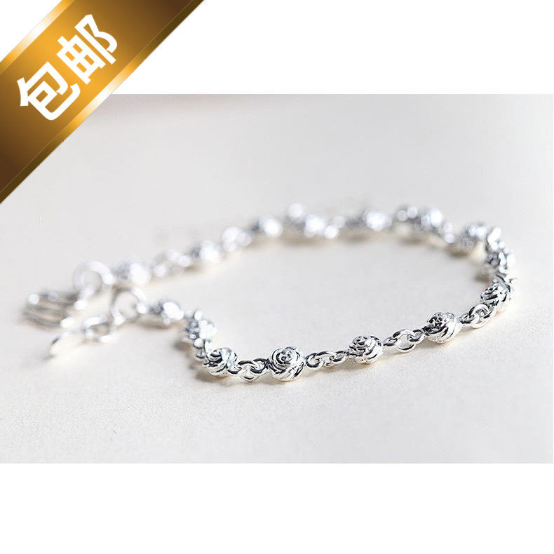 纯银手链女玫瑰花日韩简约圆珠生日礼物送闺蜜手饰