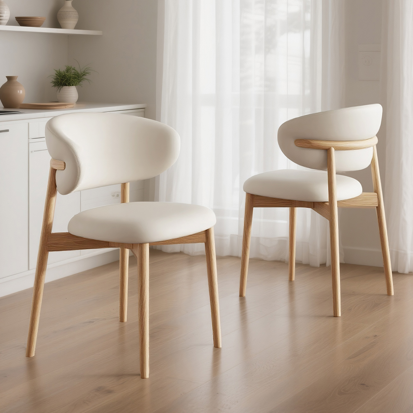 佛山新款北欧原木奶油风轻奢高端软包实木皮餐椅家用餐桌牛角椅子
