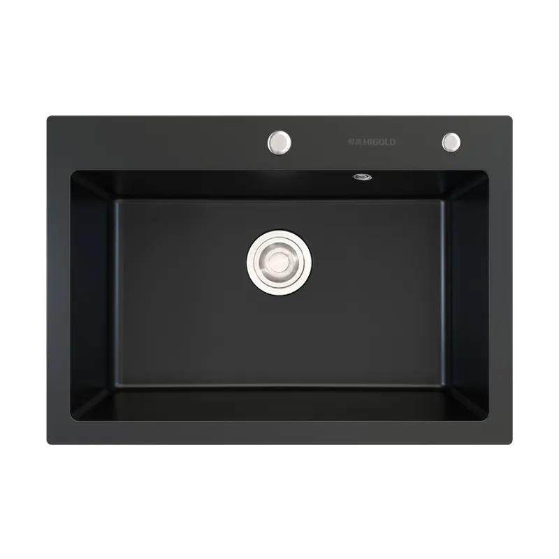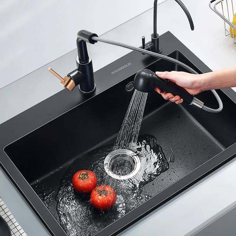 悍高厨房石英石水槽白黑色大单槽洗菜池洗碗盆台上下盆沥水篮