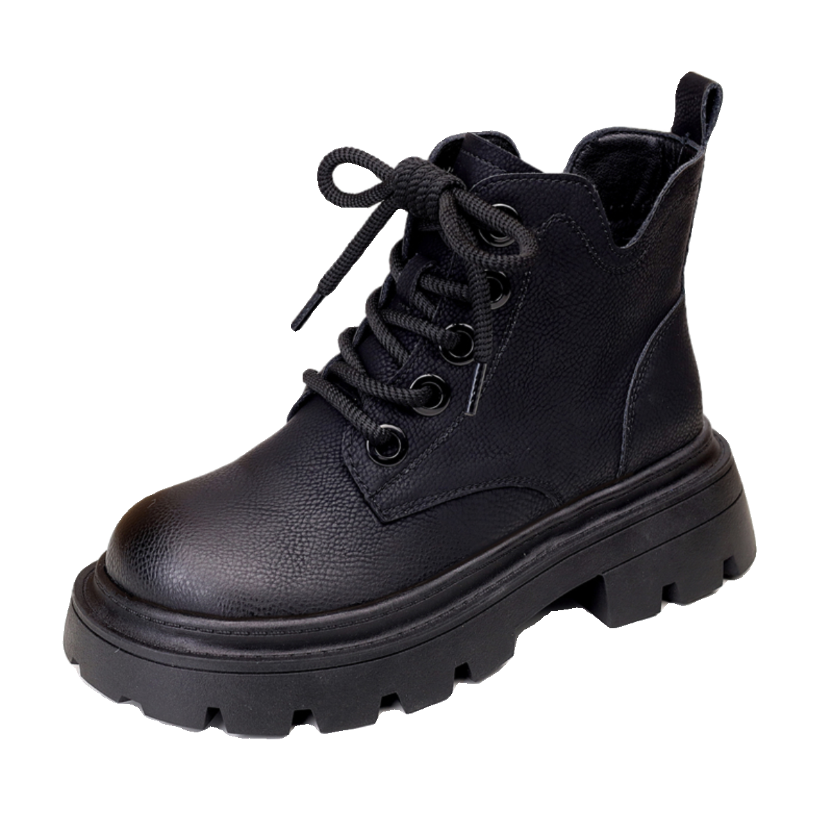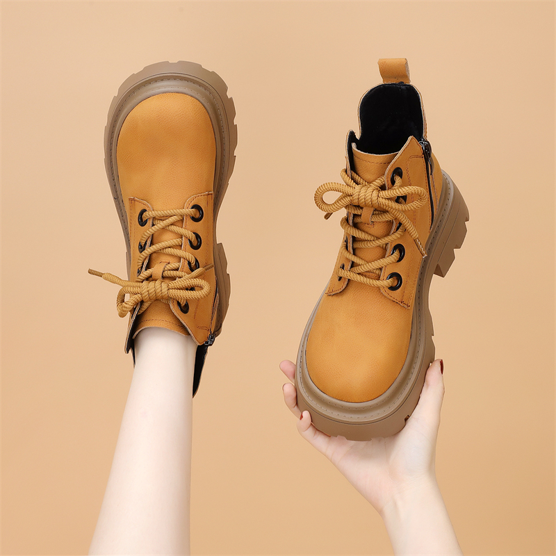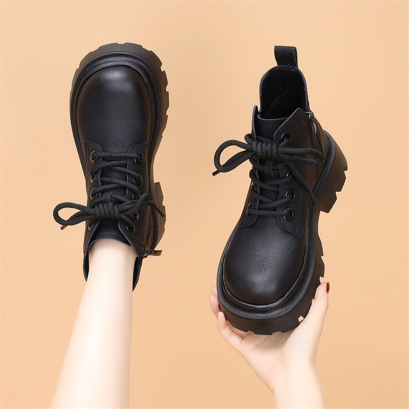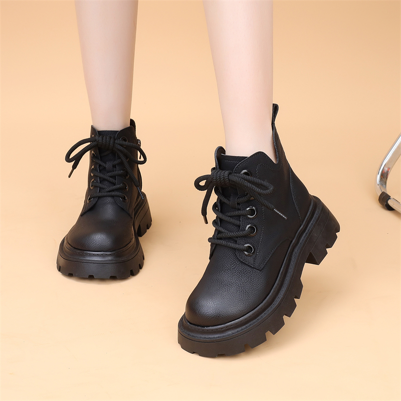 真皮圆头马丁靴女英伦风2025秋冬季新款短靴松糕厚底加绒百搭单靴