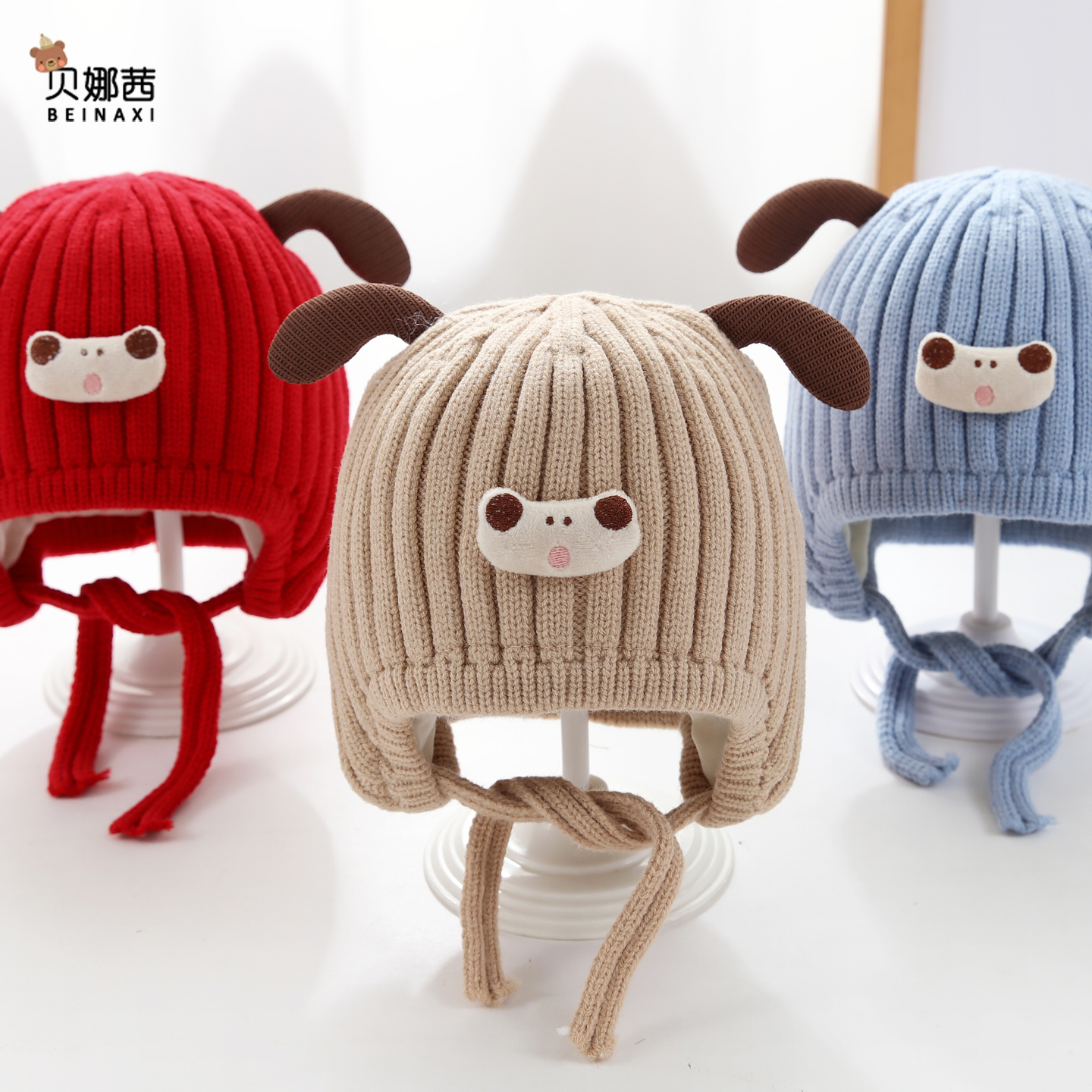 婴儿帽子秋冬男宝宝女可爱针织帽婴幼儿冬季毛线帽外出新款护耳帽