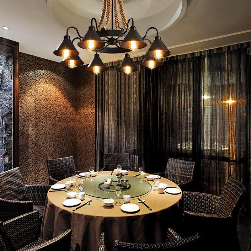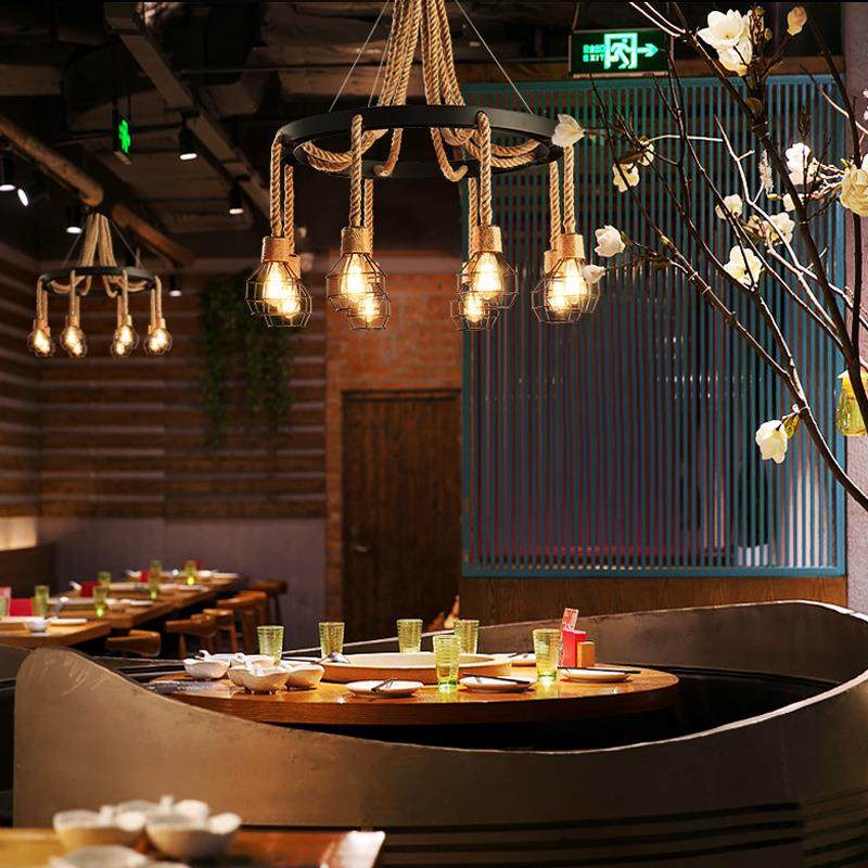 复古工业风麻绳吊灯客厅餐厅网吧咖啡服装店创意个性铁艺酒吧吊灯