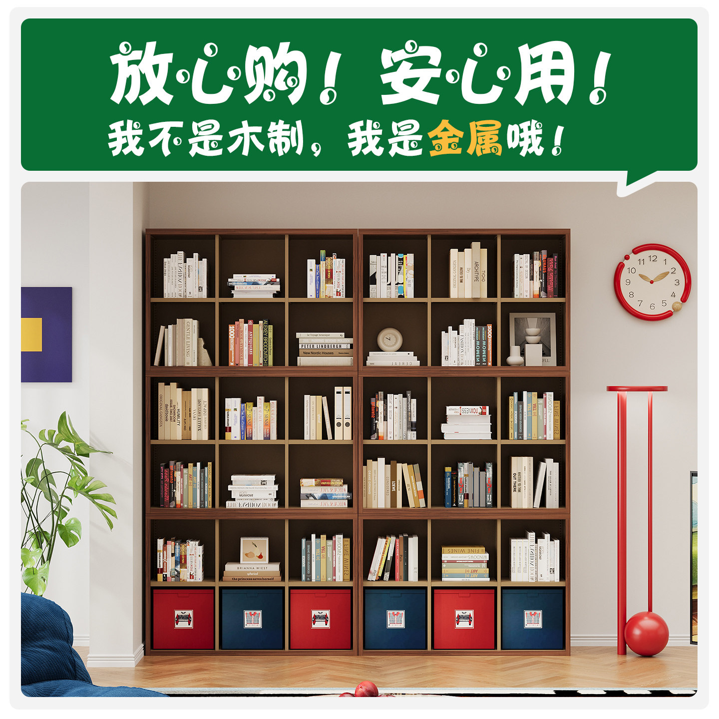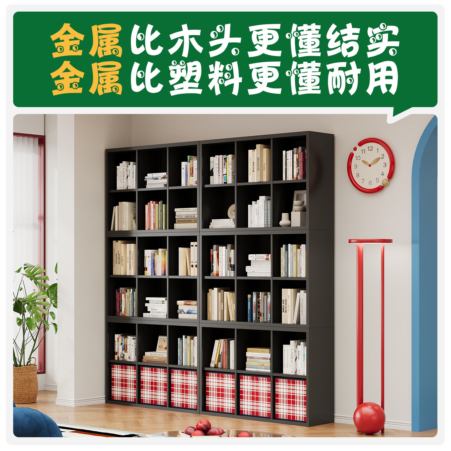 自由组合模块柜格子柜金属小户型客厅靠墙书柜书房落地书架储物柜