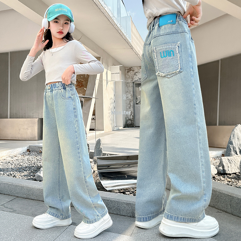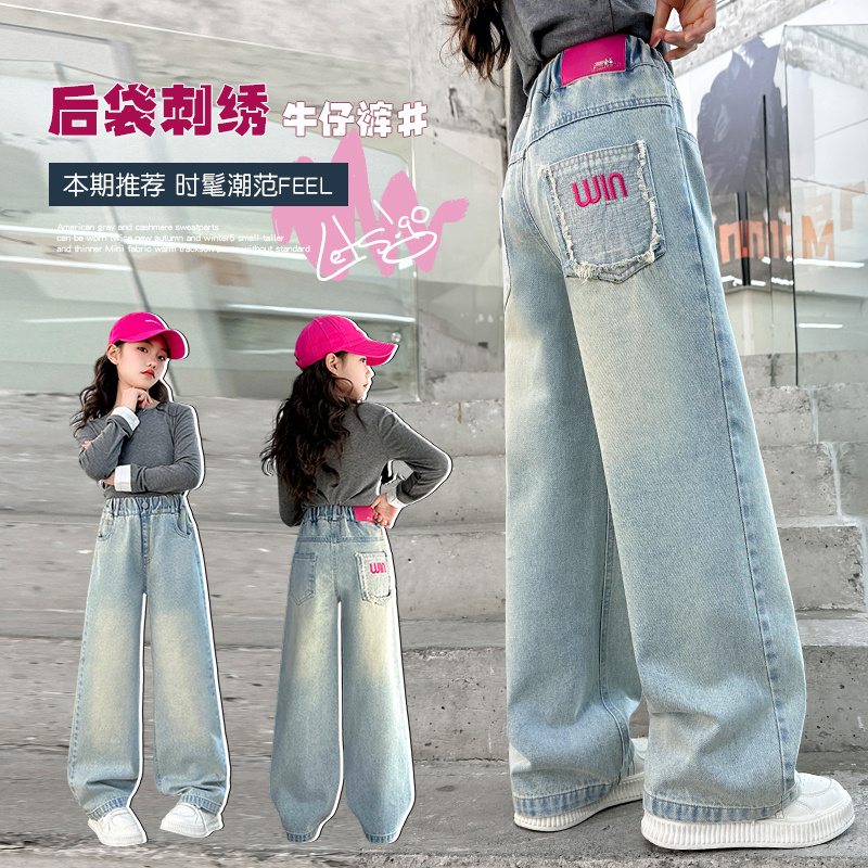 女童牛仔裤春秋2025新款儿童春季中大童直筒外穿宽松女孩春装裤子