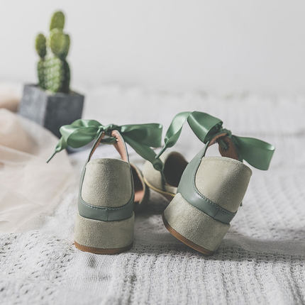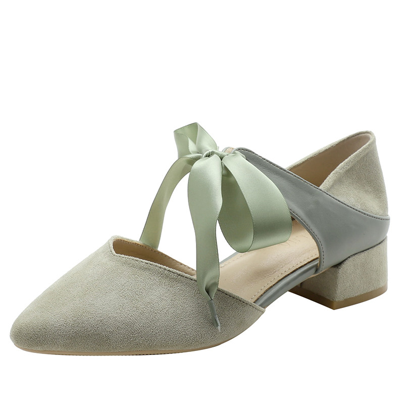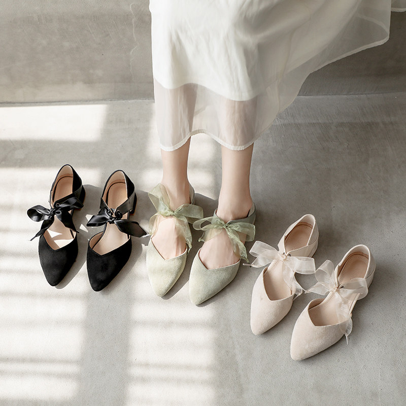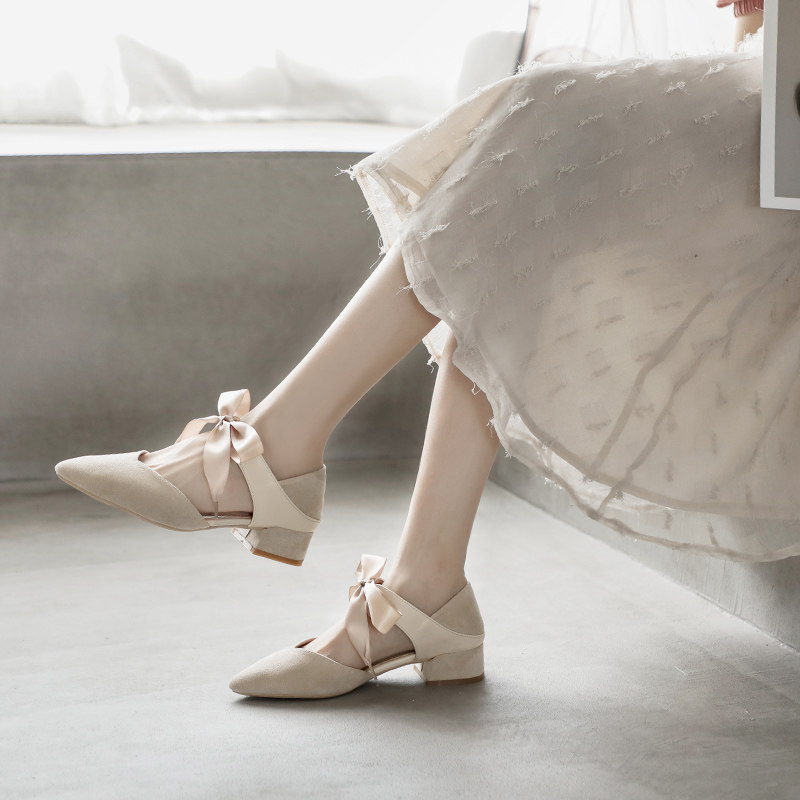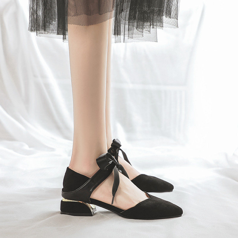 法式玛丽珍包头凉鞋女夏2025新款蝴蝶结粗跟中跟尖头仙女风高跟鞋