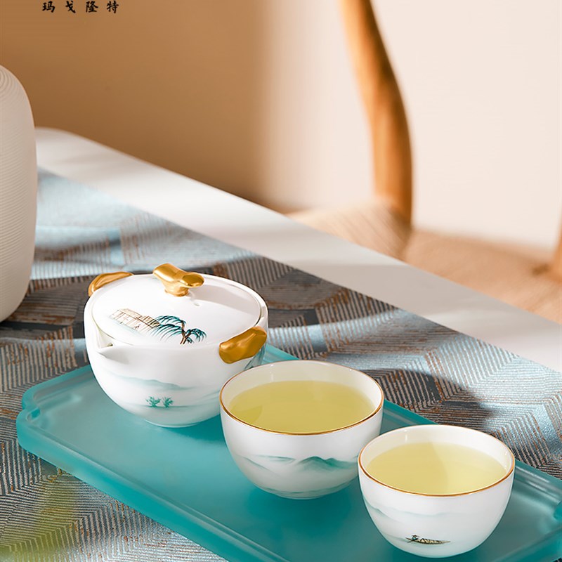 玛戈隆特 功夫整套一壶两杯便携式旅行茶具 骨瓷便携套装家用