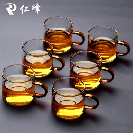 加厚耐热玻璃品茗杯子橙色带把杯中式茶具多个带把小茶杯家用茶盏
