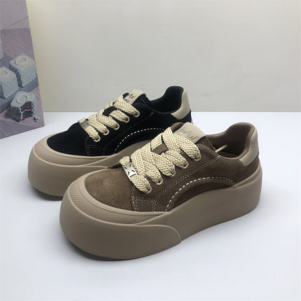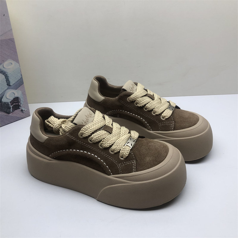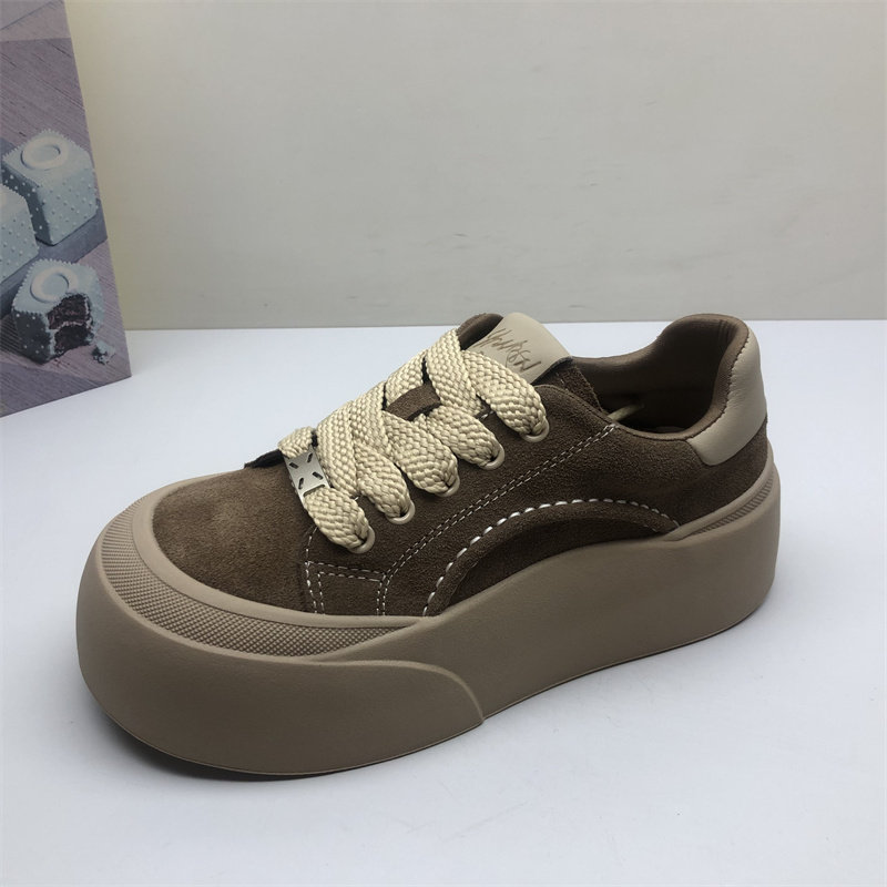 商场撤柜圆头真皮女鞋丑萌厚底简约板鞋女韩版系带松糕鞋女磨砂皮