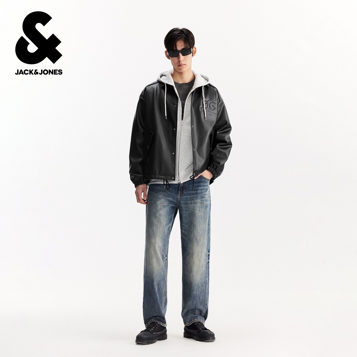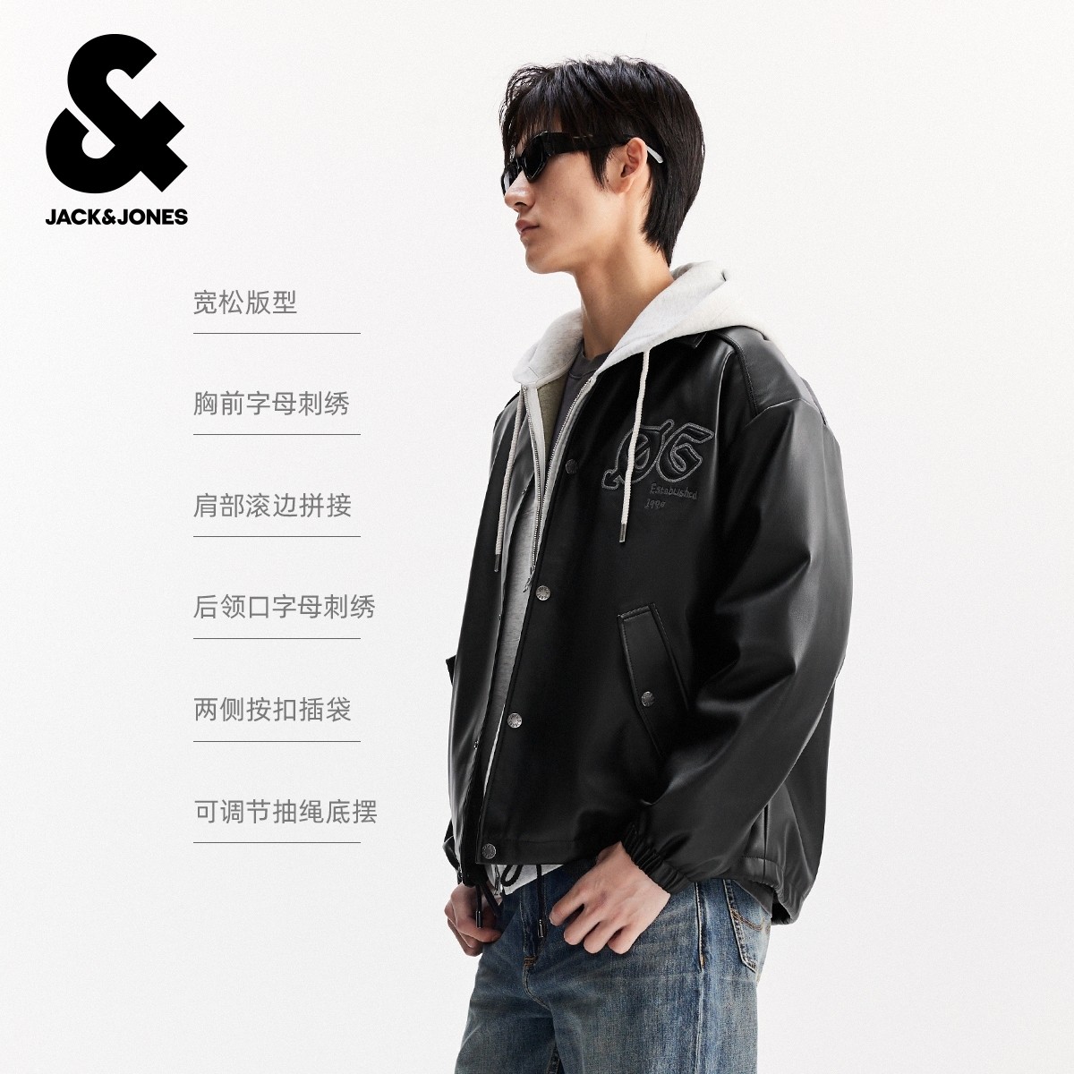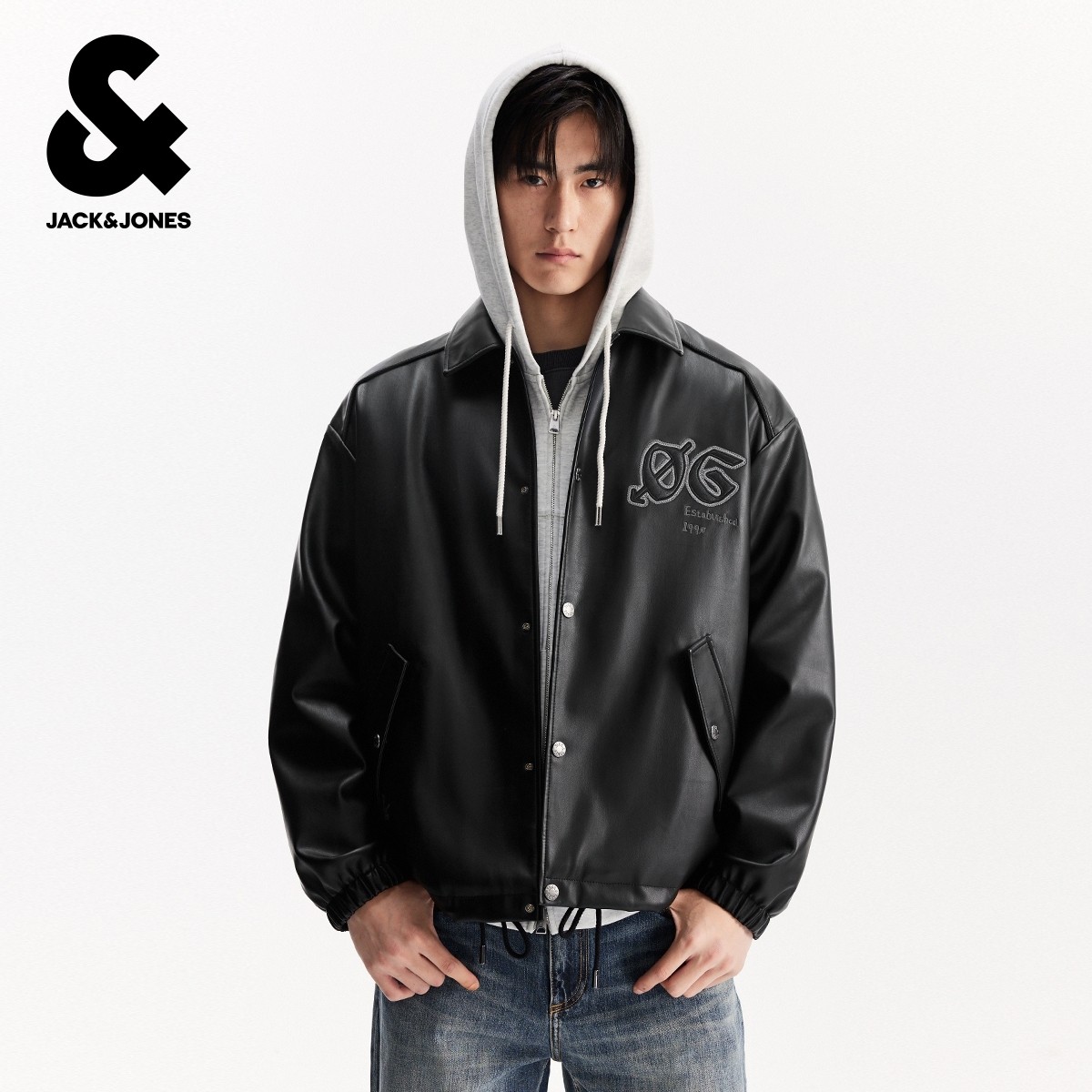 杰克琼斯男装秋冬新款字母刺绣滚边拼接休闲宽松翻领棉衣棉服外套