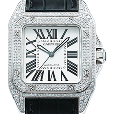 捡漏95新卡地亚山度士腕表后镶钻自动机械手表男表