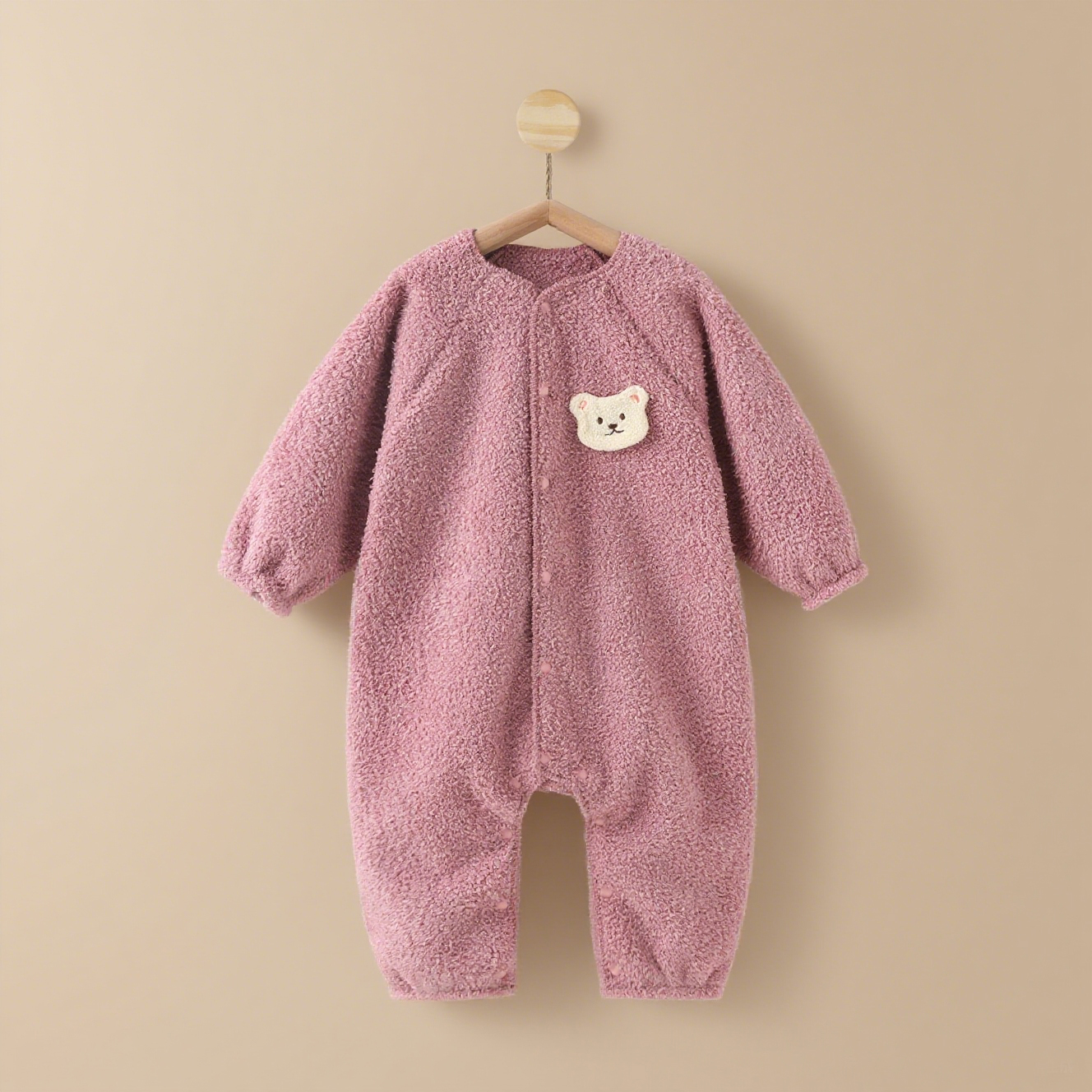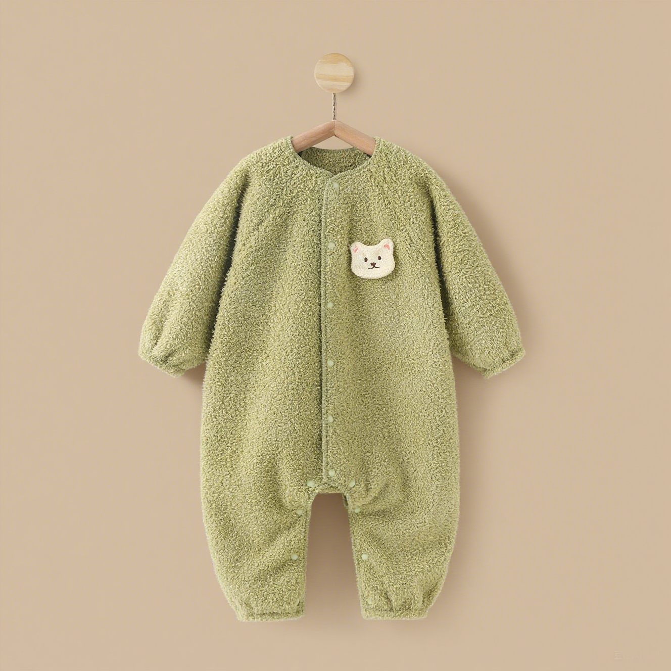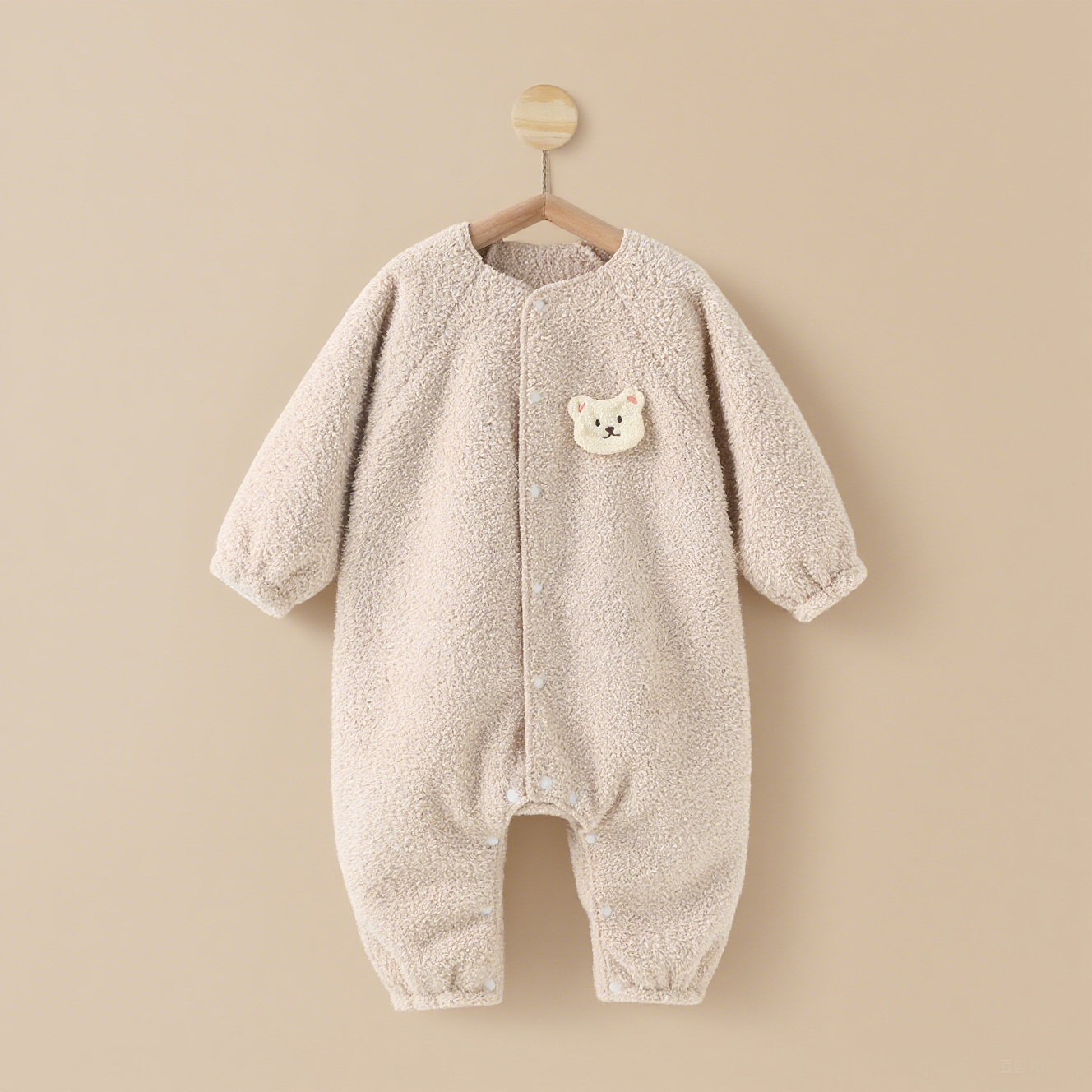 婴儿衣服冬季加绒连体衣小熊爬服小宝宝保暖哈衣云朵绒新生儿睡衣