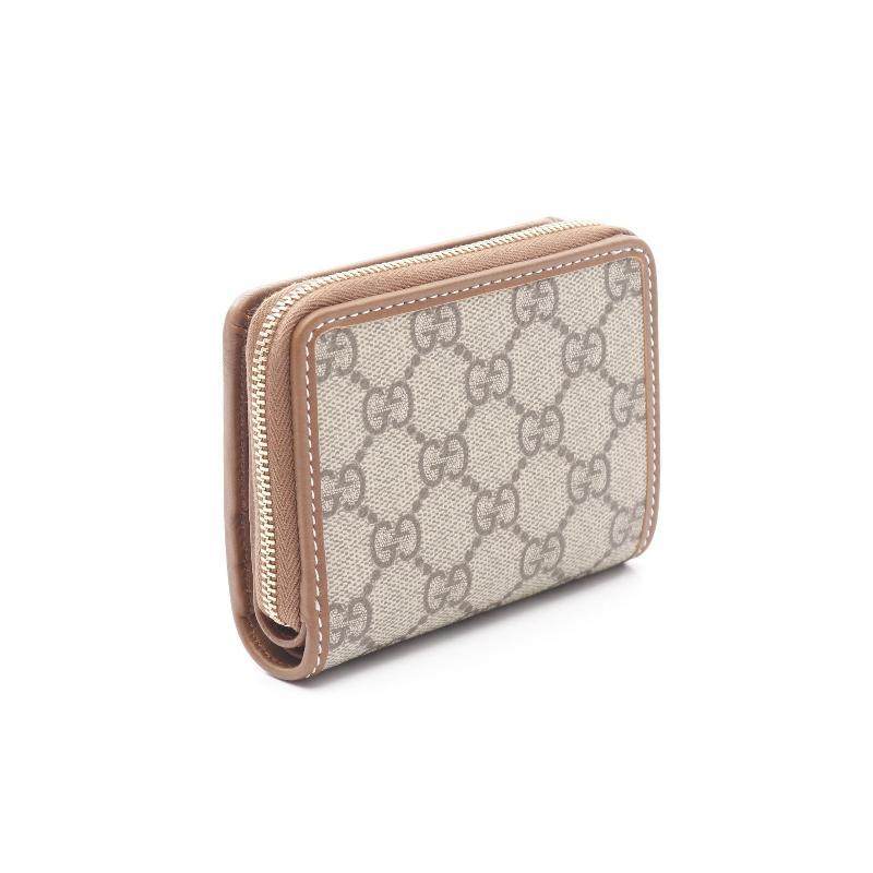 中古Gucci古驰女S级99新GG emblemGG老花涂层/防水帆布短钱包