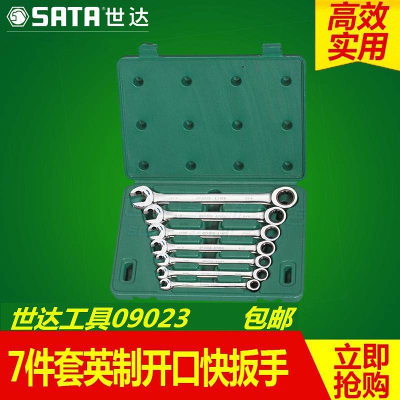 世达套筒扳手7件套英制开口快扳手组套棘轮叉口汽修汽保工具09023