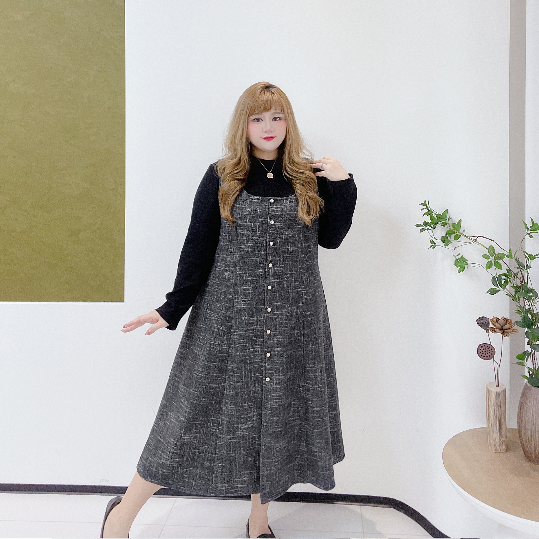 高级感气质小香毛呢背心裙胖莹莹大码女装秋冬打底衫女连衣裙套装