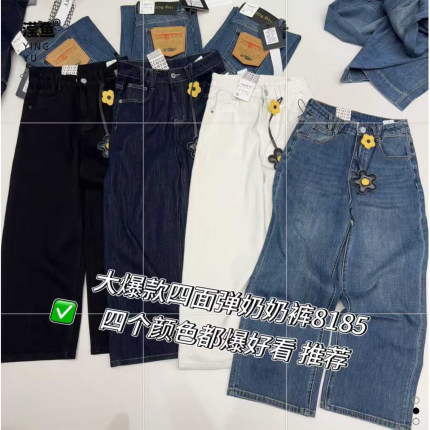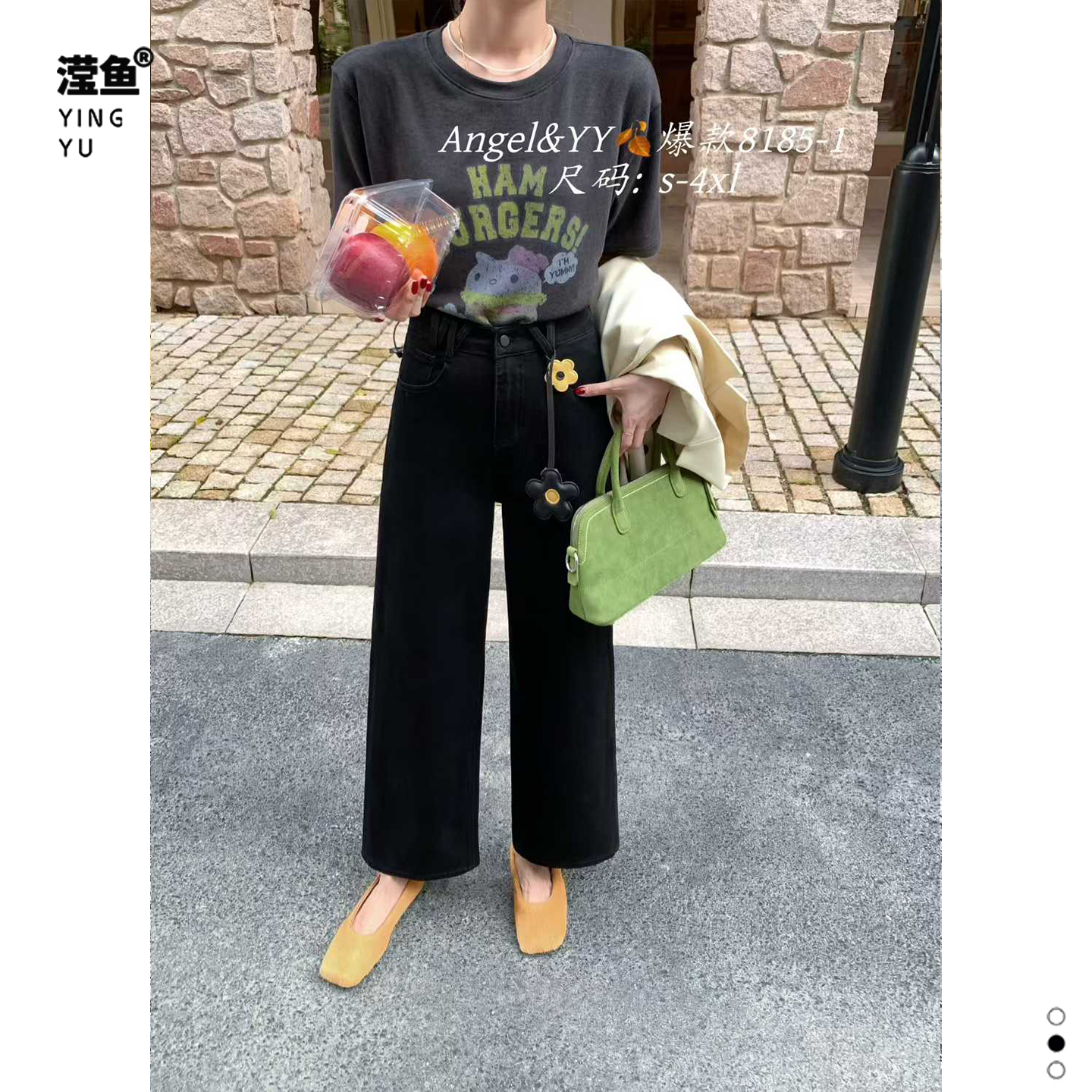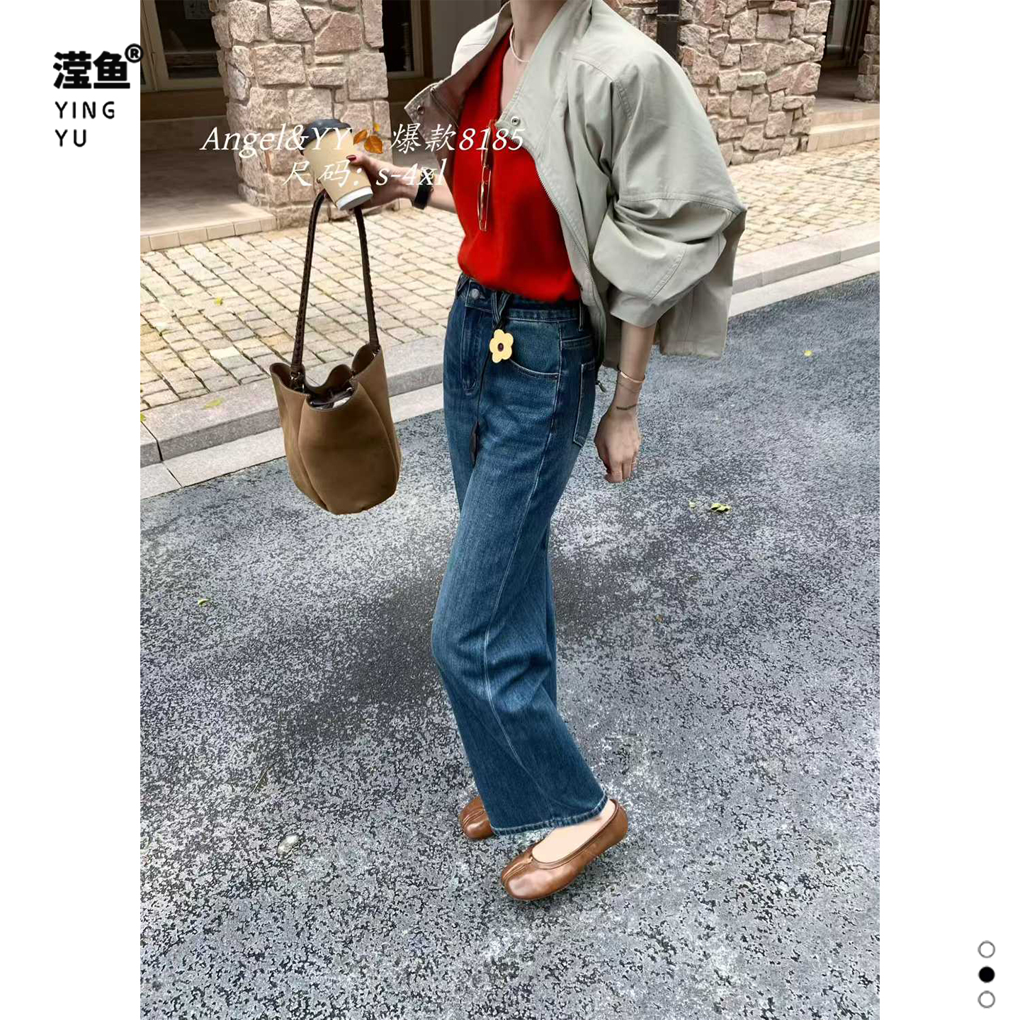 YY 8185胖MM大码韩版高腰显瘦百搭九分烟筒裤小个子法棍牛仔裤女