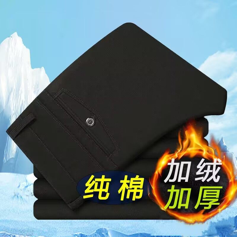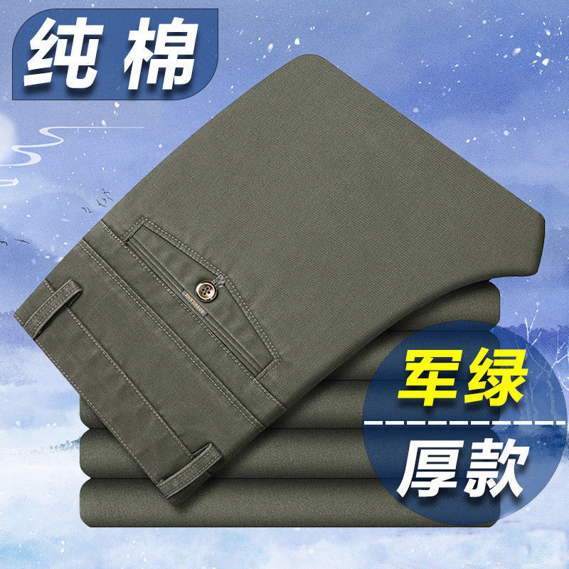 纯棉春夏薄款休闲裤男士宽松直筒裤高腰深档商务西裤中老年长裤子