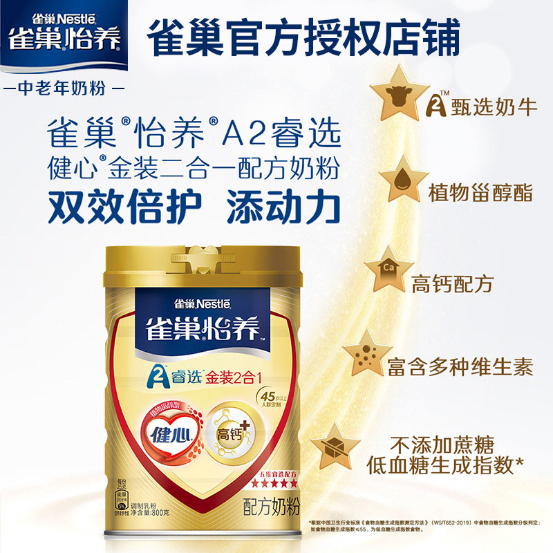 雀巢怡养健心金装2合1中老年高钙成年奶粉老年人牛奶粉两罐装