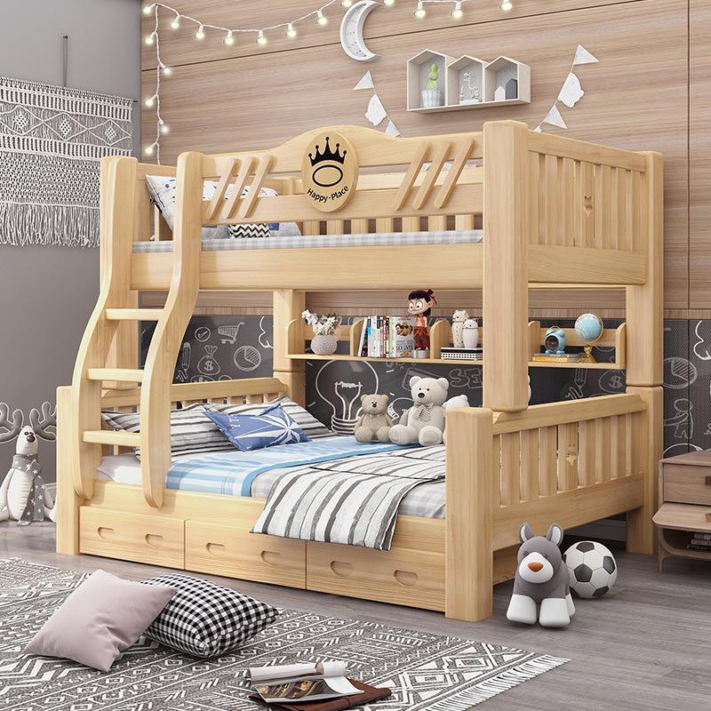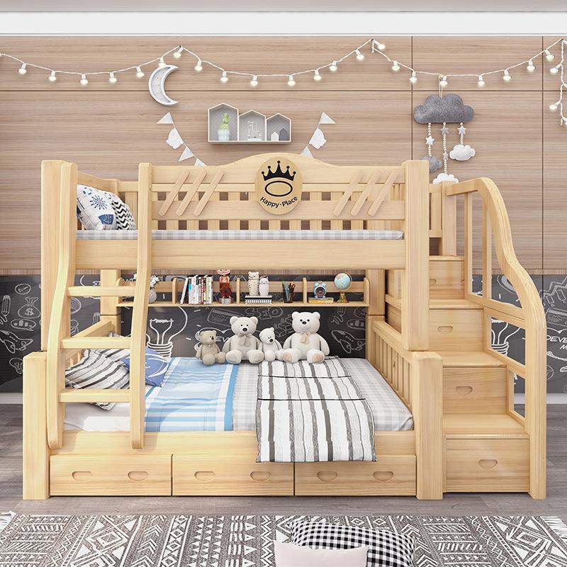 加厚全实木上下床j分体高低床成人床双层床上下铺床O款滑梯+电钻