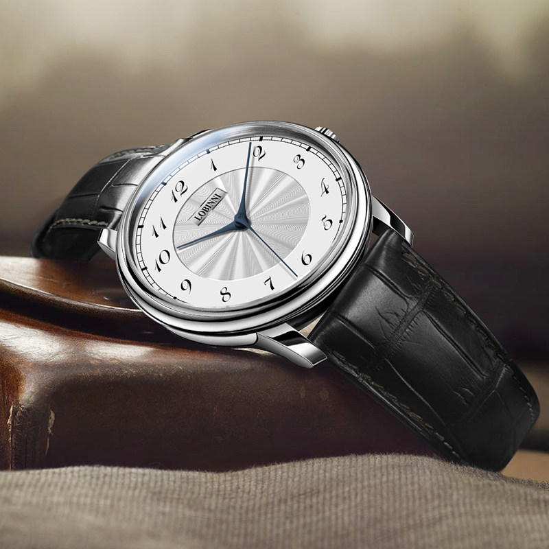 罗宾尼新款男士手表鱼骨针机械表简约商务男表全自动正品品牌