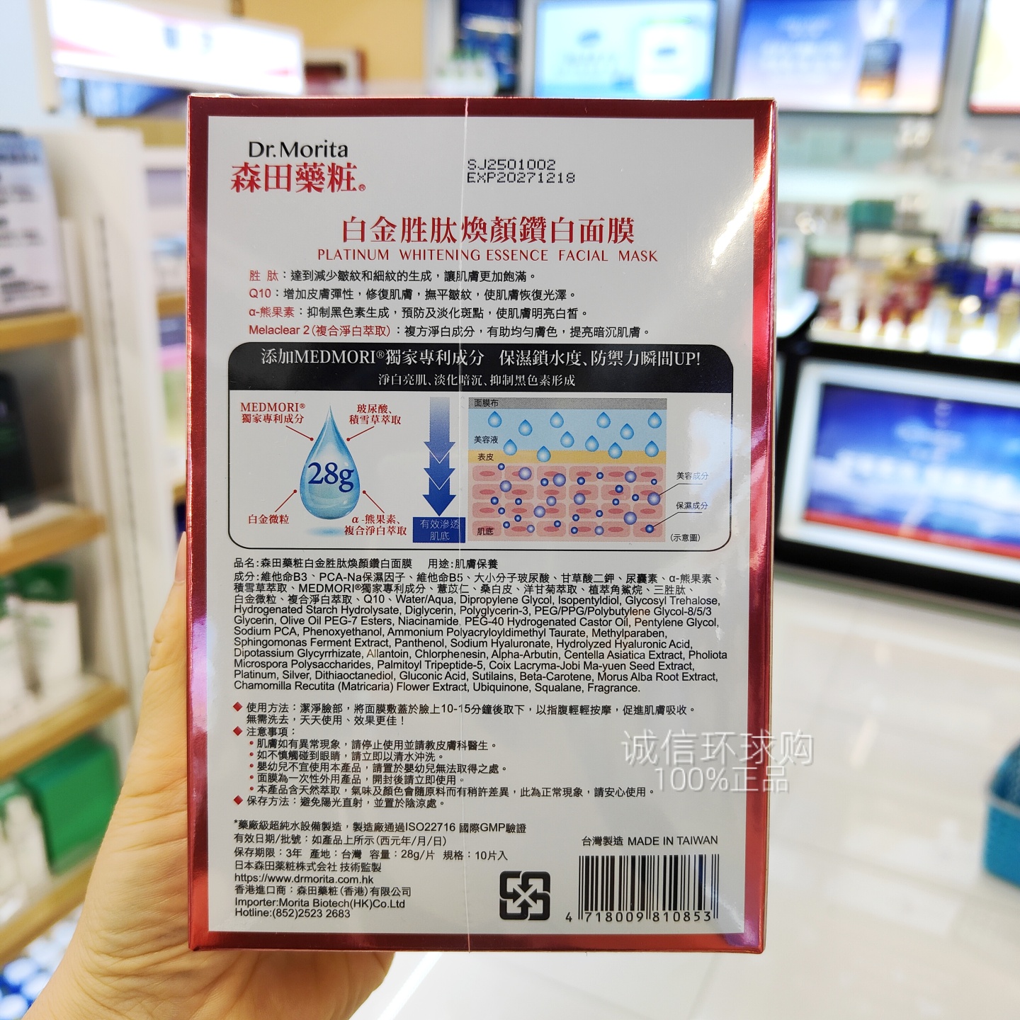 港版森田药妆玻尿酸白金面膜10片