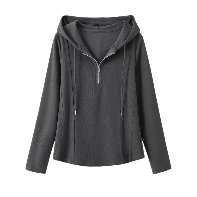 欧洲站连帽卫衣女秋冬新款弧形下摆长袖t恤打底衫中长款大版上衣