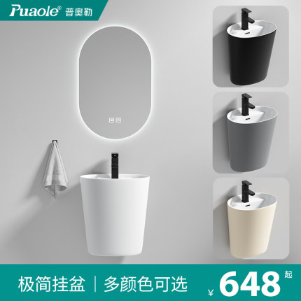 普奥勒小户型陶瓷挂墙式洗脸盆小尺寸壁挂式洗手盆悬空挂盆彩色