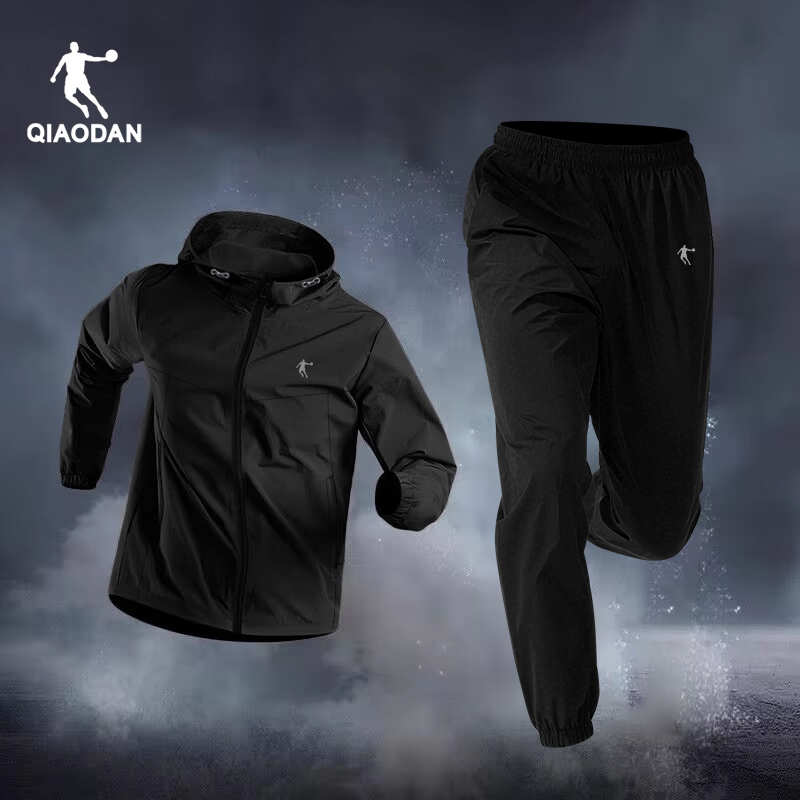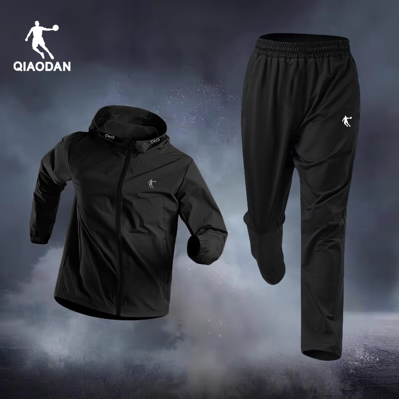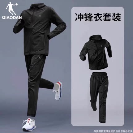 乔丹防泼水户外运动套装男2025秋季新款徒步冲锋衣外套长裤两件套